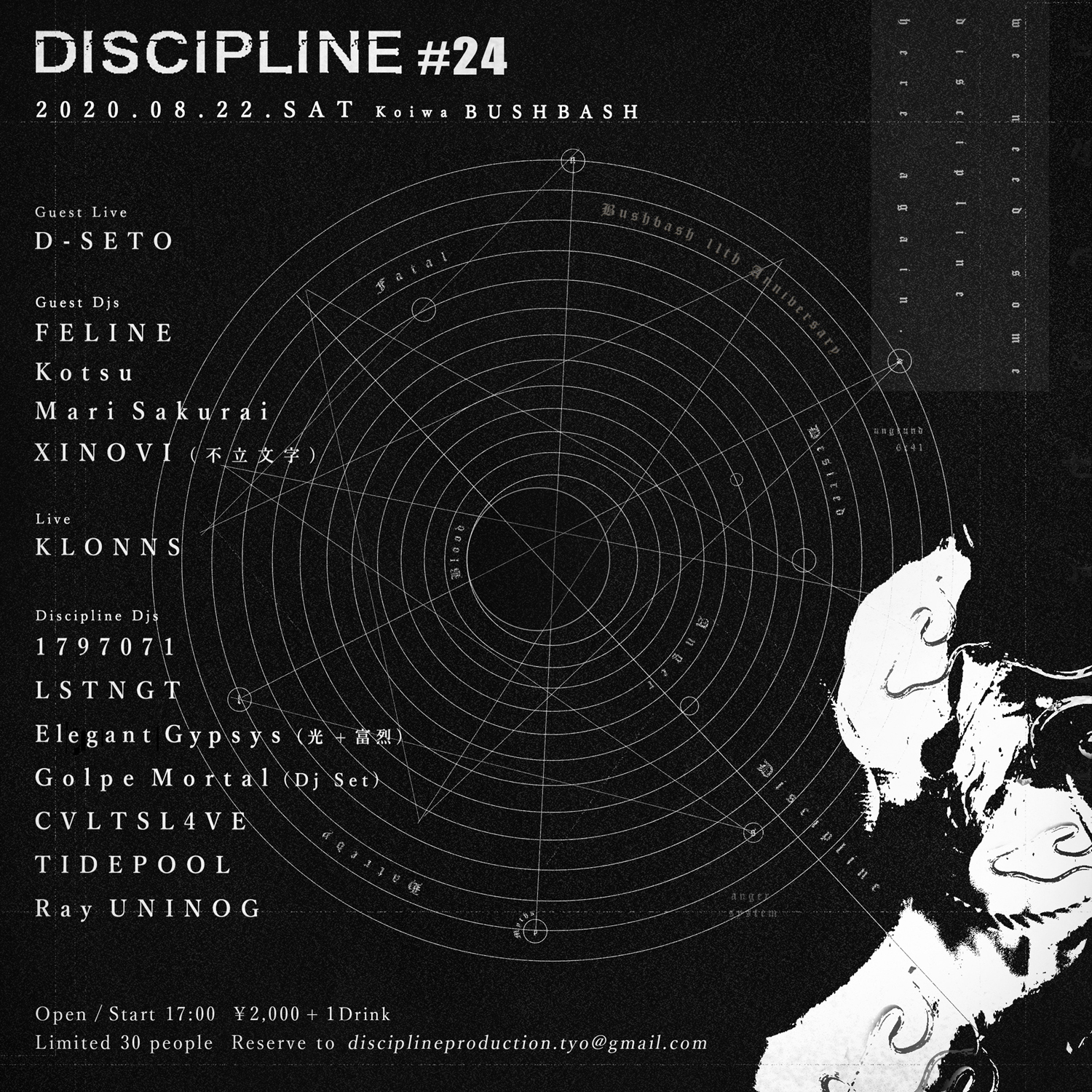 最新監督作品『JUST ANOTHER』の公開を10月24日(土)に控える映像作家・大石規湖が撮影を担当したオンライン・パーティや、Hate (MOONSCAPE) 主催「CVLTIVATE」とのコラボレート・イベントの開催、「CVLT Nation」主催オンライン・ライヴ「Sonic Unrest」への中心メンバー出演など、話題の続くコレクティヴ「DISCIPLINE」が、毎月第4土曜に東京・小岩 BUSHBASHにて開催しているレギュラー・パーティの第24回を8月22日(土)に開催。