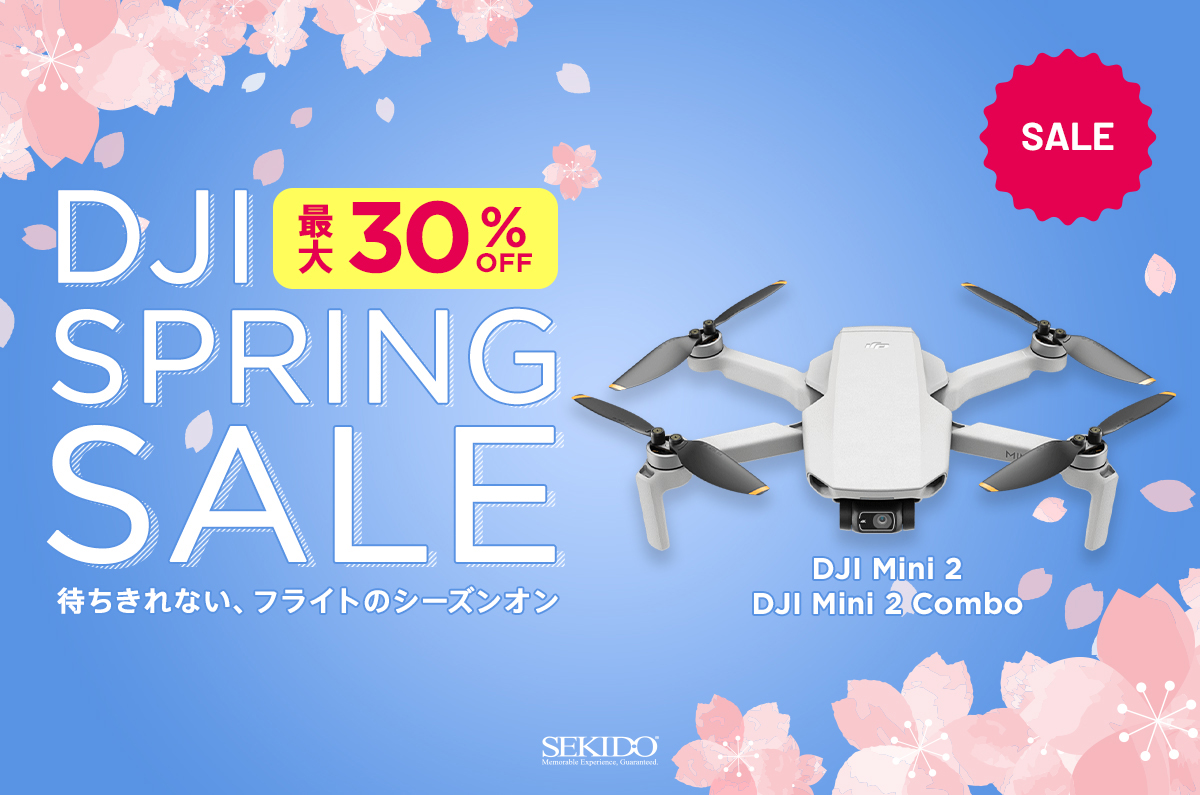 商用 / コンシューマ向けマルチコプター(ドローン)市場にて世界トップ・シェアを誇るメーカー「DJI」(大疆创新科技有限公司 | 中国・深圳)の日本正規販売代理店「株式会社セキド」が、エントリー用としても人気を博しているベーシック・モデル『DJI Mini 2』のプライスダウン・キャンペーン「DJI スプリングセール」を2月14日(火)から3月31日(金)まで実施。