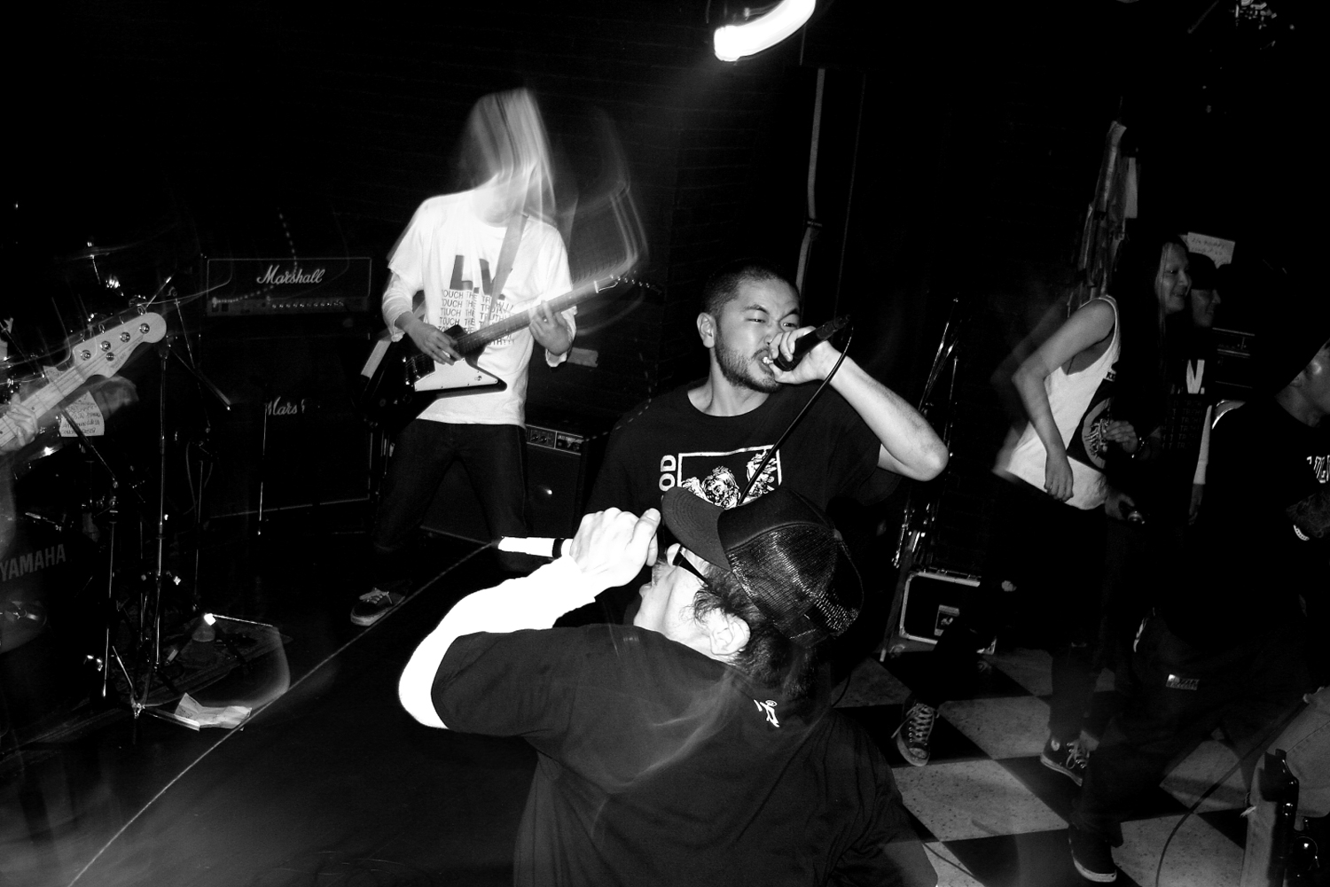 「そもそも、OS3がパワーヴァイオレンスをやるために結成したバンドだったので、パワーヴァイオレンス一辺倒です!ライヴではSLIGHT SLAPPERSとかFUCK ON THE BEACHとかを観ていたし、SPAZZとかも聴いてはいたのですが、DREADEYEに入ってからパワーヴァイオレンスを学びました!当時、ファストコア寄りのパワーヴァイオレンス・バンドばかりだったので、よりブルータルな曲をやりたい、っていう感じだったと思います」