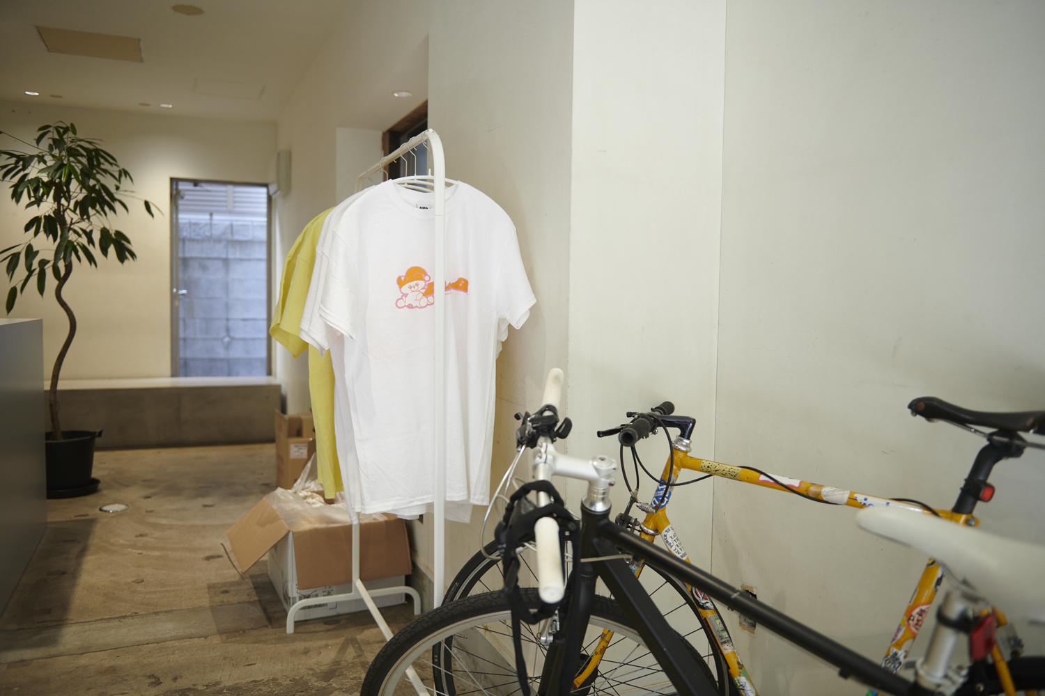 「DMB PRODUCTIONのTシャツを初めて扱っていただいたアパレルのお店がMIN-NANOでした。代々木上原で、オークラくん(大倉有記)の12XUのオープン1周年記念イベント?でBfがライヴをやった打ち上げで、ゴローくん(中津川吾郎 | MIN-NANO, TOXGO)が“お店にTシャツ置きませんか?”って声を掛けてくださって。レーベルTシャツのノリだったので、3,500円とか上代付けちゃって、横並びのブランドさんもあるのにすいません……って感じでした。MIN-NANOで扱ってもらってからアパレル……というのはなんだか慣れないんですけど、そっちの方向でも広がっていってくれました。置いてくださっているお店を選ぶなんておこがましいこと言えないんですが、だいたい勢いでDMを送りつけています。“置かせてください!”って言われることがないので、自分から行くしかない(笑)。有名ブランドでもないので、売れる数だけ作って、お店に迷惑をかけない程度に売れてくれればいいと思っています。でも数を売らないと経費も払えないので、飽きられない程度にちょっとずつ広げていきたいです。よく行くお店はTOXGOですね、ゴローくんとタツオくん(山上達生 | KINSELLA)とナリくんと話しに行きます。あとはstacks bookstore(東京・渋谷)もおもしろい展示をやっていることが多いので顔を出していますね。SUNDAYS BESTもたまに行ってはくだらない話をさせてもらってます。吉祥寺のBEN’S SLOP SHOPもちょこちょこ行ってます。Sniite(東京・世田谷)はもっと近かったら通いたい!CUP AND CONEは移転後まだ伺えておらず、不義理ですいません!」