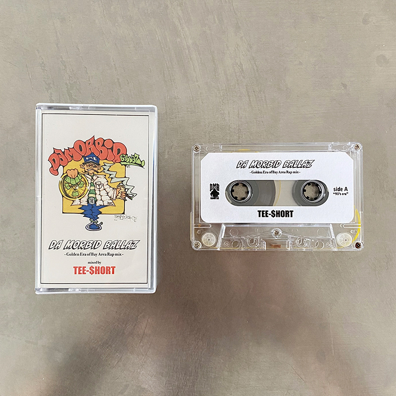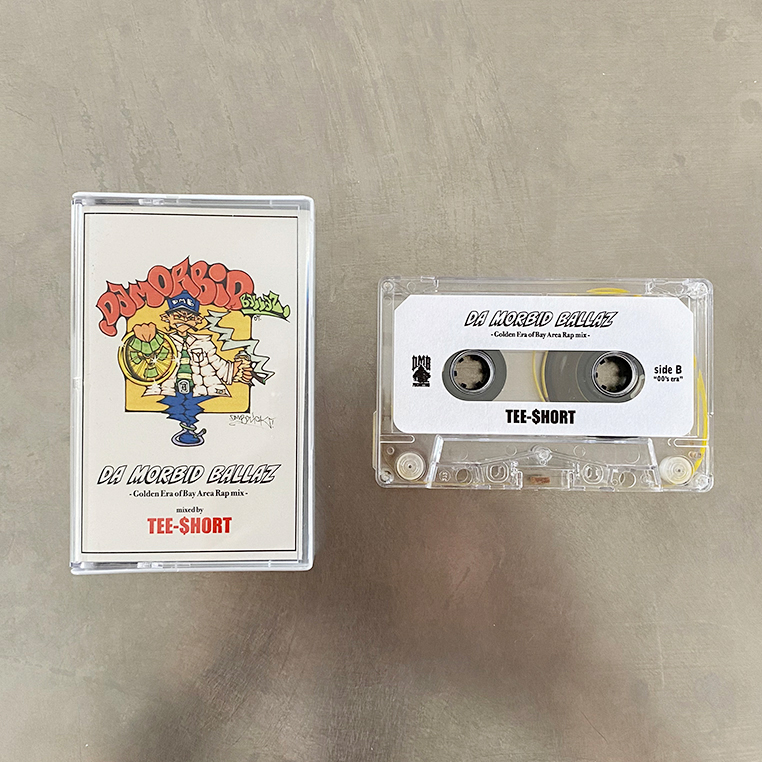 また、ILL-TEEの盟友というストーリーで語られ、「MidNightMeal Records」からのミックス・シリーズ『Night & Bay』も好評を博しているDJ、TEE-$HORTによるミックステープ『Da Morbid Ballaz “Golden Era of the Bay Area Raps” mix』(Cassette tape DMB-009 1,800円 + 税)も同時リリース。カヴァー・アートにはTシャツと同様のTaniguchiによるピースをあしらい、サイドAに90s、サイドBには00sの楽曲をフィーチャーしたベイ・オンリーのミックスとなっています。
