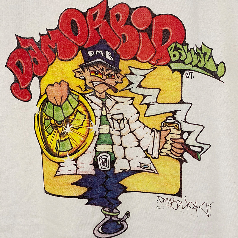 6月にBBVGC(Blessed Blood Vulva + GxCx)とPSYWARFARE (Dwid Hellion | INTEGRITY) のスプリット作品『Demons Mourn For Bloodshed』をリリースしたばかりのKemmy 3000(DREADEYE)主宰「DMB PRODUCTION」が、Gファンク・インスパイアのイラストレーションで知られる米西海岸・ベイエリア在住のColin TaniguchiとコラボレートしたTシャツ『’Da Morbid Ballaz’ Tee』(6,800円 + 税 | M-XXL)を発売。併せてILL-TEE(MEDULLA, ROCKCRIMAZ)をフィーチャーしたルックも公開されています。