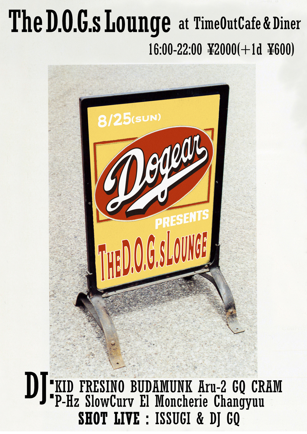 昨年も同時期に同会場にて開催された「The D.O.G.s Lounge」。今年はISSUGI + DJ GQのライヴ・パフォーマンス、Aru-2、BUDAMUNK、Changyuu、DJ GQ、CRAM、KID FRESINO、El Moncherie、P-Hz、SlowCurvによるDJが予定されています。