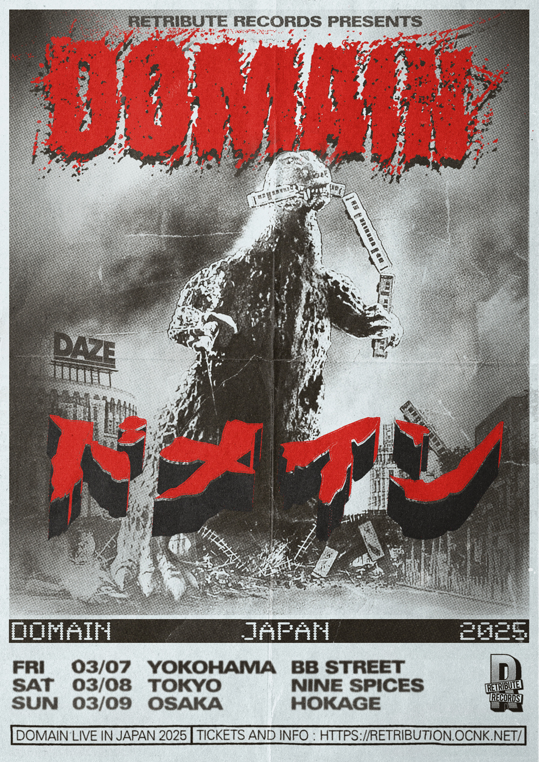 EPHEMERALでも活躍するメンバーや元xBISHOPxのメンバーが在籍し、MORNING AGAINに象徴される90sフロリダ・ハードコアをダイレクトに継承しながらも、NYHC、フレンチ、H8000などのクラシックから得たインスピレーションをイーヴルにミックスしたヘヴィ・ハードコアが魅力のDOMAIN。『Life's Cold Grasp』のリリース元でもある「Retribute Records」の招聘で開催される初来日ツアーは、2025年3月7日(金)神奈川・横浜 B.B.STREET、8日(土)東京・新宿 NINE SPICES、9日(日)大阪・西心斎橋 HOKAGEの全3公演。オンライン・ストア「Retribution Network」では、早割チケット(先着66枚限定)の販売が12月27日(金)まで実施されています。