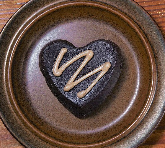 湯せんで丁寧に焼き上げたハート形のブラウニーはしっとり濃厚な仕上がり。細かく挽いたコーヒー豆を混ぜ込むことで、最後までふんわり広がるコーヒーの香りを楽しめます。