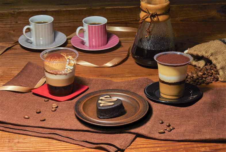 “コーヒーブレイク”をキーワードにドトールコーヒーが監修した3品は、コーヒームースにココアスポンジ、コーヒーシロップ、マスカルポーネ入りティラミスムースを重ねた『とろけるコーヒーティラミス』、コーヒーゼリーとコーヒームース、ホイップクリーム、コーヒーソースを合わせた『なめらかカフェゼリーパフェ』、細かく挽いたコーヒー豆を混ぜ込んだ、湯せんで丁寧に焼き上げたハート形の『しっとり濃厚ブラウニー』。いずれも香りと食感、“ほんのりビターなテイスト”にこだわっているとのこと。