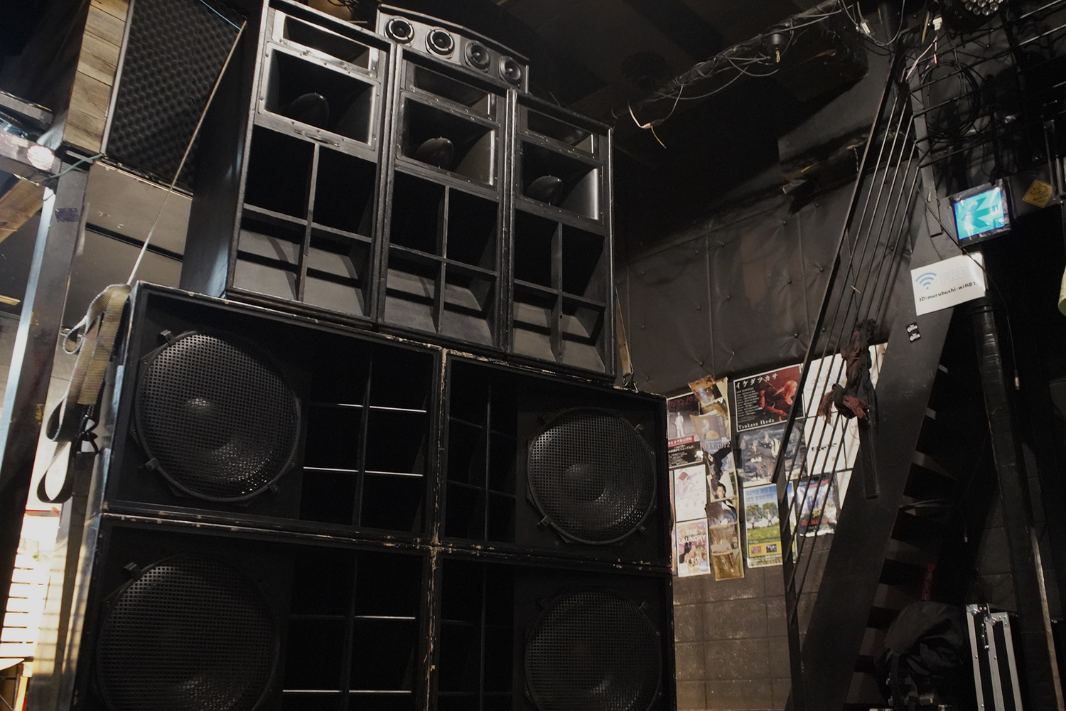 オーナーのJohnny Goldが所有するスピーカー群は国内屈指の極重低音を鳴らすことができる一方、未だ全解放したことがない程の出力を誇る。