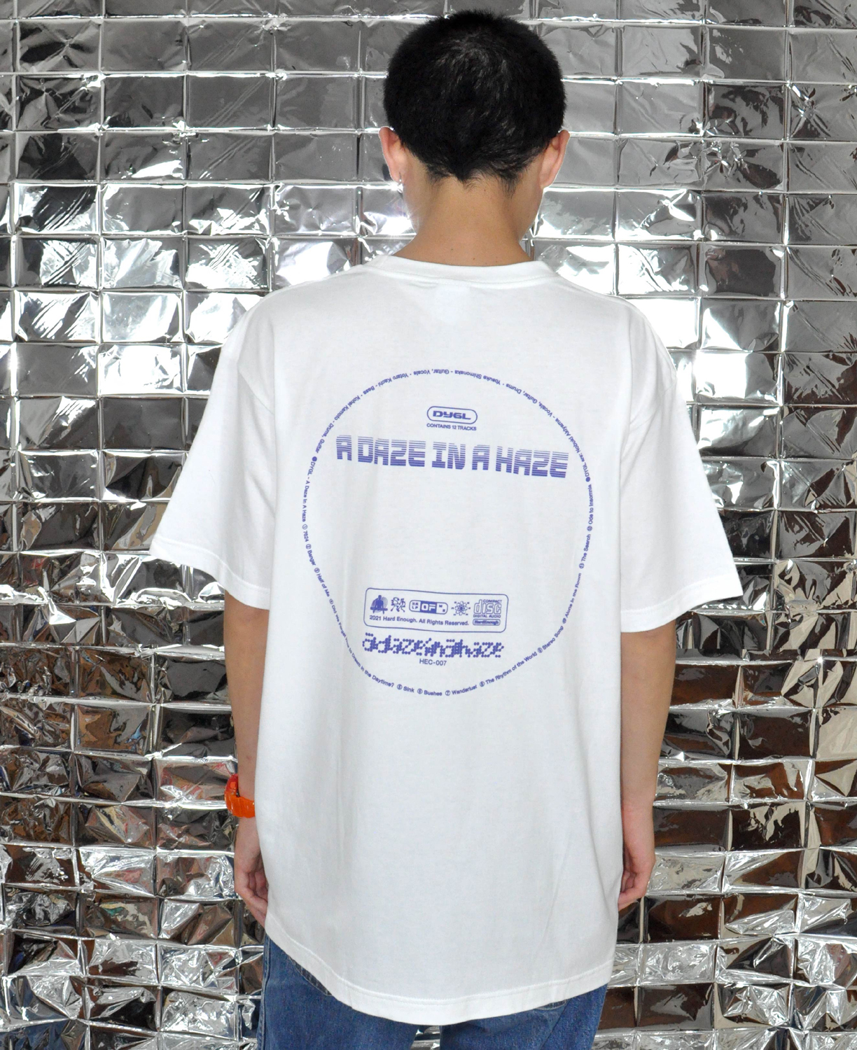 また、『A Daze In A Haze』の“真空パック風”限定盤のみに付属するTシャツのルックを公開。1stフル・アルバム『Orca』を8月にリリースするNTsKiと、“Kazumichi Komatsu”名義での初フル・アルバム『Emboss Star』を昨年11月に発表した小松千倫 fka Madeggがモデルを務めています。デザインは、シングル・トリロジー『Sink』『Banger』『Did We Forget How to Dream in the Daytime?』および『A Daze In A Haze』のカヴァー・アートも手がけた独ベルリン在住の美術家・Masako Hiranoによるもの。