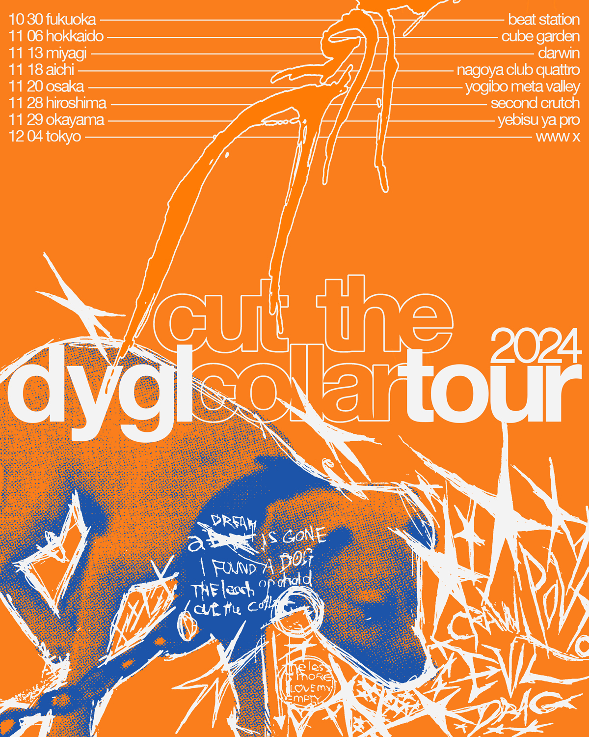 なおDYGLは、約2年ぶりの全国ツアー「Cut the Collar Tour 2024」を10月末より開催。10月30日(水)福岡・BEAT STATIONを皮切りに、11月6日(水)北海道・札幌 cube garden、13日(水)宮城・仙台 darwin、18日(月)愛知・名古屋 CLUB QUATTRO、20日(水)大阪・難波 Yogibo META VALLEY、28日(木)広島・SECOND CRUTCH、29日(金)岡山・YEBISU YA PRO、12月4日(水)東京・渋谷 WWW Xの国内8都市8公演が予定されています。