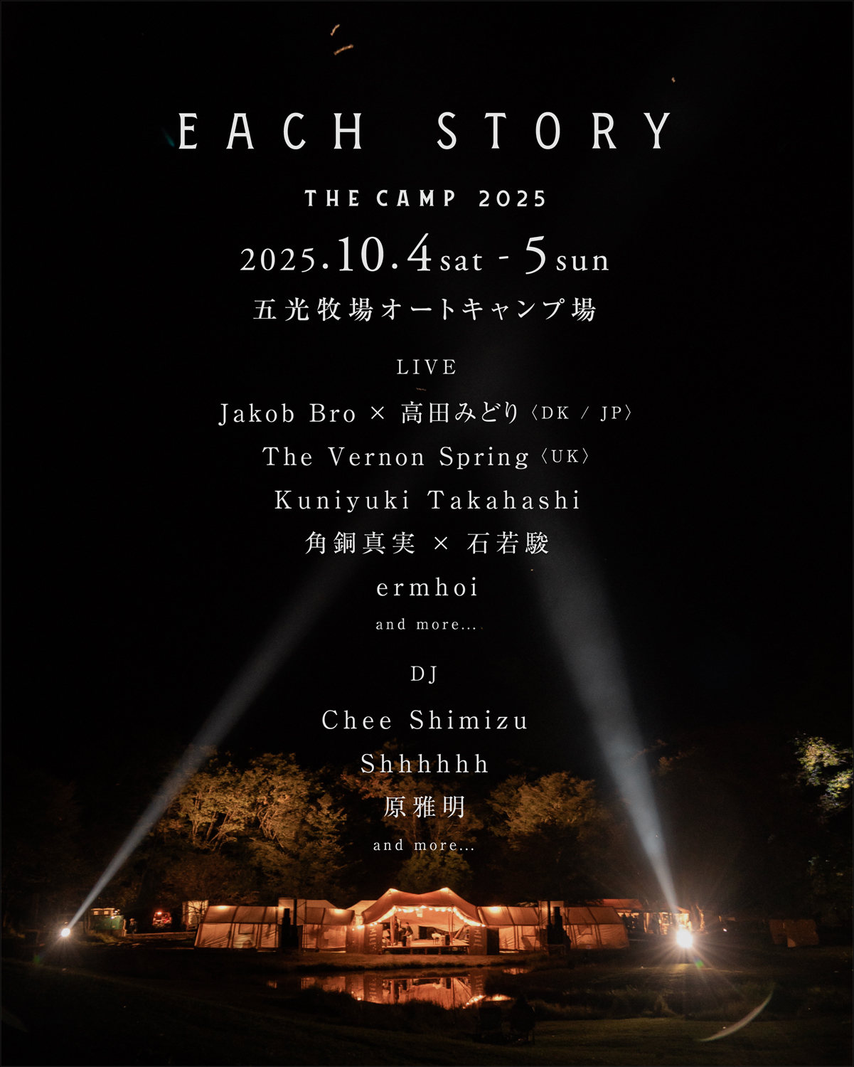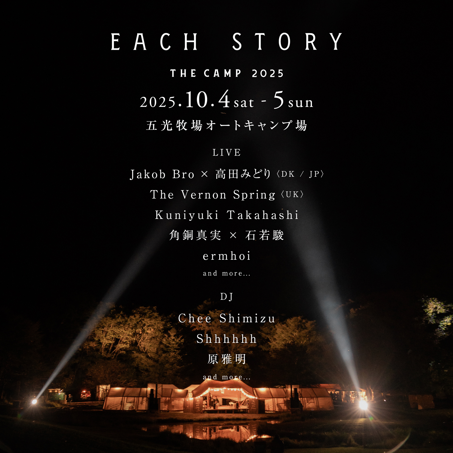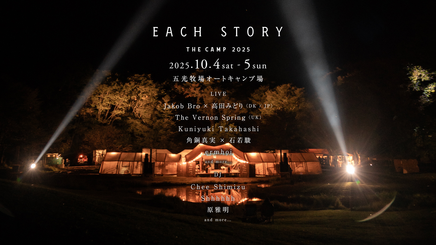 今年で5周年を迎える野外イベント「EACH STORY ~THE CAMP~ 2025」が長野・南佐久 五光牧場オートキャンプ場にて10月4日(土)、5日(日)の2日間に亘って開催されます。
