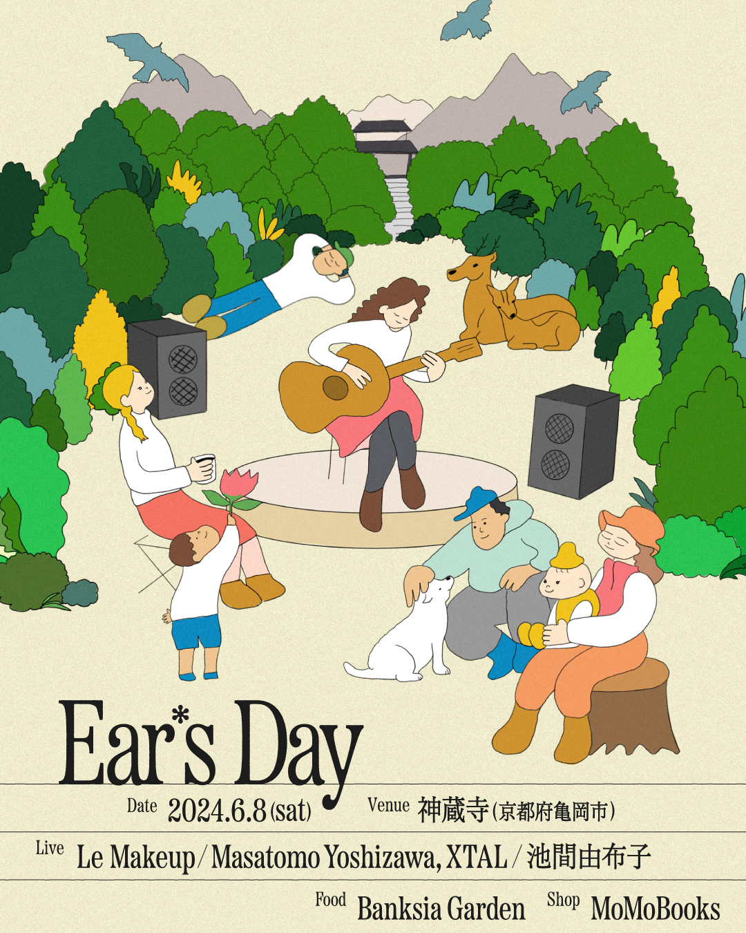 自然豊かな京都・亀岡 神蔵寺を舞台に、都市の騒々しさから離れたロケーションで聴覚にフォーカスするイベント「Ear's Day -耳の日-」が6月8日(土)に開催されます。