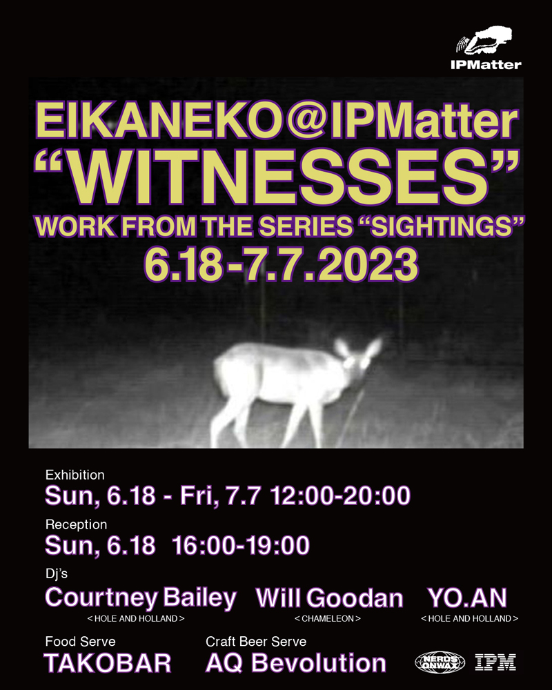 機械的複製物のフラグメントを再構成することでオリジナルとは異なる視点を付与するコラージュのプロセスを経て、主にグラファイトを用いた描画での作品を手がける金子。「WITNESSES」には、シリーズ「Sightings」からの作品を出展。IPMatterとのコラボレーションで制作されたジン、Tシャツ、アート・ポスター、ステッカーのセットや、ワックス・ブランド「NERDSONWAX」とのカプセル・コレクションも販売されます。