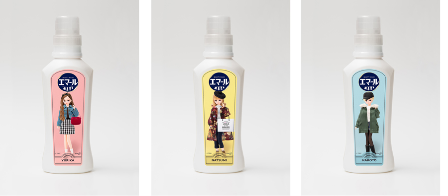 オンラインで服や髪型、メイクを選んで自分だけのオリジナル「リカちゃん」(株式会社タカラトミー)をコーディネートできるスマートフォン専用コンテンツ「リカちゃんコーディネートメーカー」が、コーディネートしたリカちゃんを“おしゃれ着用洗剤”「エマール」(花王株式会社)のボトルにプリントしたスペシャル・アイテム「オリジナルエマールボトル」(税込550円 + 送料550円)を1月14日(火)12:00より1,300セット数量限定で再販売。