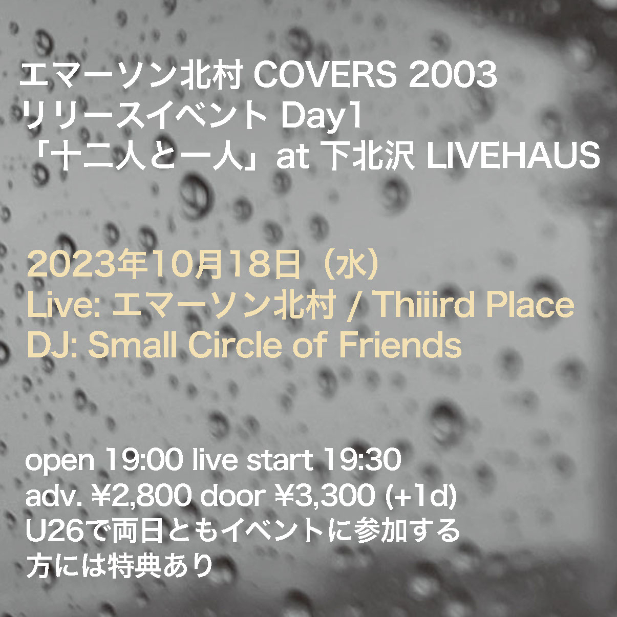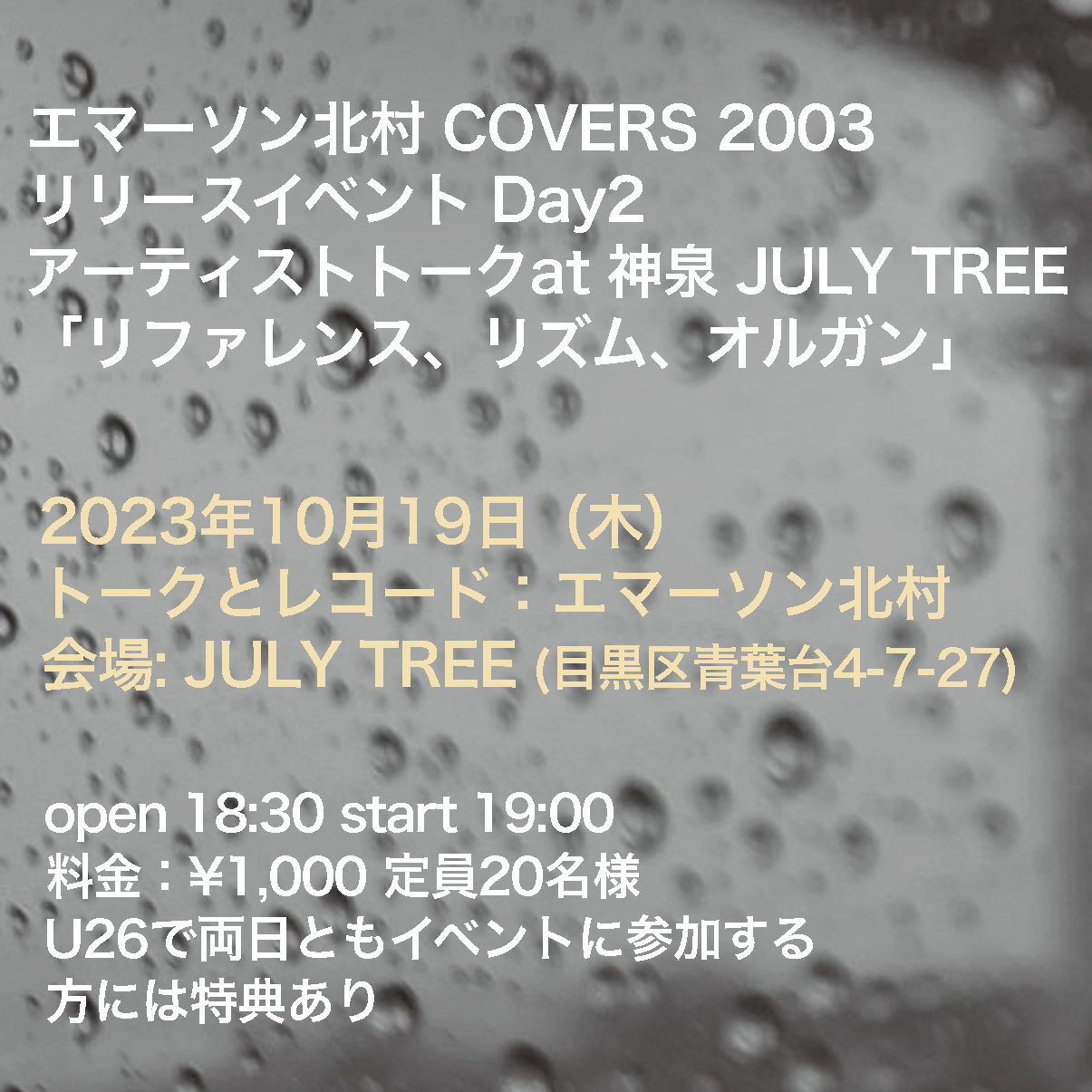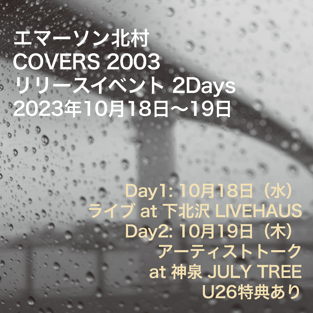 近年はmmm、高島匡未らとのコラボレートワークや、昨年の目下最新“エマソロ”作品『船窓 / おろかな指』が好評を博しているエマーソン北村が、カヴァー集『COVERS 2003』を自主レーベル「bubblingnotes」よりデジタルと12"ヴァイナル(KMVLE-012 2,800円 + 税)の2フォーマットでリリース。10月11日(水)の発売に先駆け、Bandcampにて60秒試聴音源が公開されています。
