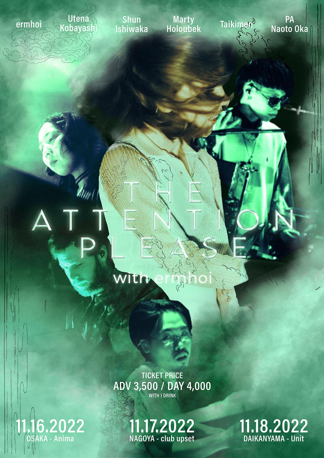 昨年12月に発表したフル・アルバム『DREAM LAND』が好評を博しているermhoiが、石若 駿、小林うてな、Marty Holoubek、山﨑大輝 aka Taikimenを演奏陣に迎えた“ermhoi with the Attention Please”編制での東名阪ツアー「The Attention Please with ermhoi」を11月16日(水)大阪・心斎橋 ANIMA、17日(木)愛知・名古屋 CLUB UPSET、18日(金)東京・代官山 UNITの日程で開催。