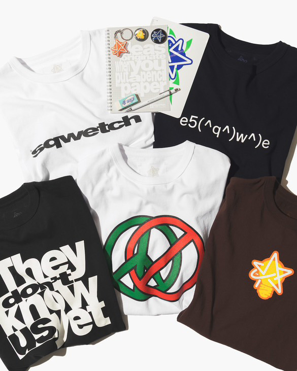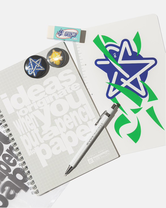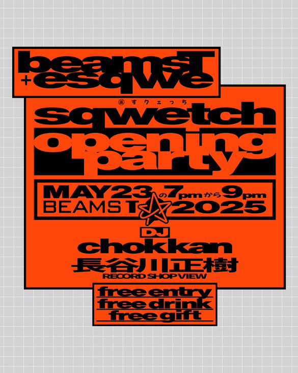 同展では、タイポグラフィ作品の出展に加え、「BEAMS T」のオリジナル・ボディ『newT』にesqweのデザインをあしらったTシャツ5型を販売。メモパッド、シャープペンシルなどをパッケージした「ステーショナリーセット」も販売するほか、「3Dキーチェーン」の新色を先行発売。初日に実施されるオープニング・パーティには、DJとしてちょっかん、長谷川正樹(RECORD SHOP VIEW)が出演します。