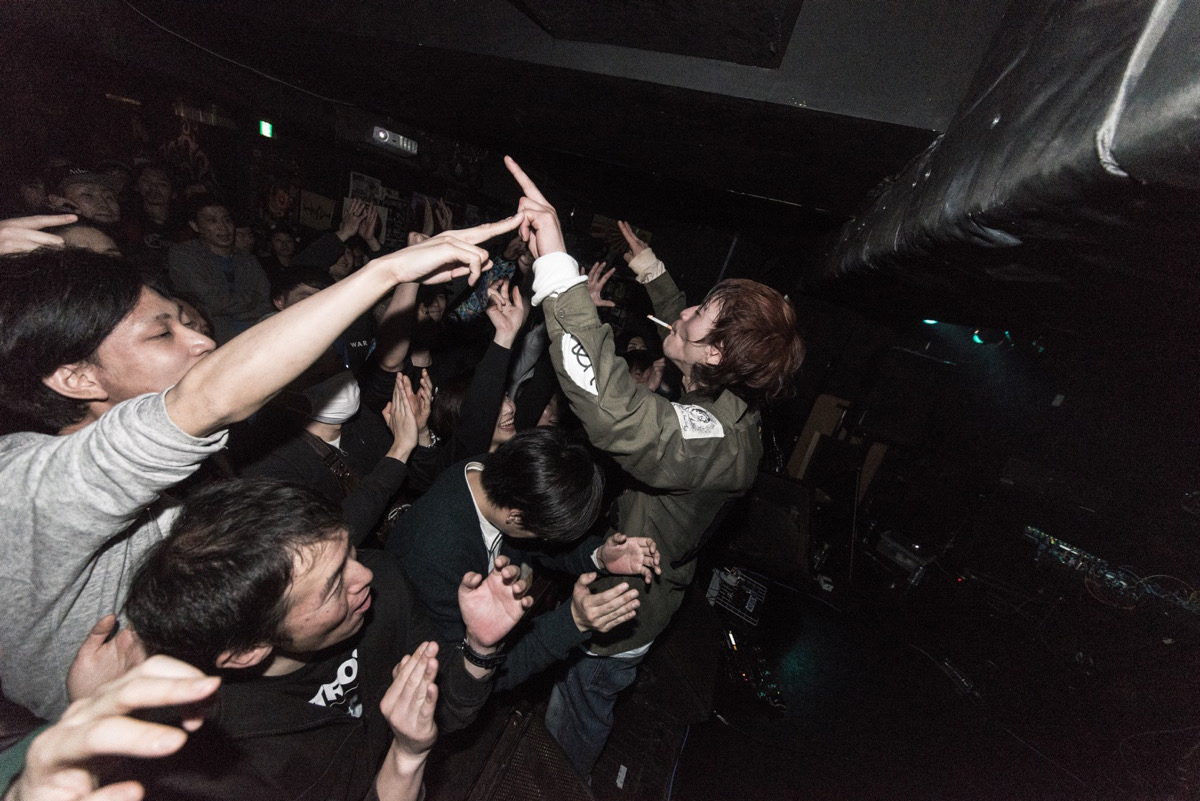 そうこうするうちに、筆者の片想い念が伝播したのか、彼の単独インタビューを取る機会に恵まれたのです。赤い牛のシンボルでおなじみの清涼飲料水が所有するスタジオでのレコーディング・セッション企画で、“No-Input Mixing Board”奏者として名高い中村としまるさん、「MultipleTap」をはじめとする挑戦的な企画の主催でも知られる康 勝栄さん、そしてENDONのバンドメイトであり、ソロでもスプリット作品を発表した相手でもある愛甲太郎さん(M.A.S.F.)という、またとない面々とのセッションを録音後に、各々の単独取材という算段でした。録音は、スタジオの専属エンジニア・川島 隆さんのお人柄と手腕もあって無事終了。彼はほぼ全編ヘッドセットでのヴォイス・ドローン。そういったパフォーマンスはこれまで観たことがなかったので、音楽家としての引き出しの多さに感嘆したのでした。ところが、いざインタビューの段になってみると、彼は爆睡。みんなで代わる代わる声をかけても目を覚ますことはなく、結局は愛甲さんが“らしいよ”方式で答えてくださることに。ヴォイス・ドローンは想定していたセットではなく、寝かかっていただけだったのです。睡眠は決して彼の怠惰や不徳によるものではないので、笑ってはいけない気もするのだけれど、取材時にインタビュイーが寝てしまうという経験は初めてだったので、可笑しくて笑った笑った。みんなも笑った。ソファに沈み込むように眠る彼の姿には、昭和っぽい破天荒な芸術家というよりも、どこかエンジェルめいた魅力を感じていました。その日、彼はENDON『Acme. Apathy. Amok』(2011, […]dotsmark)リリース時のTシャツを着用していて、筆者もお気に入りでよく着ていることもあり、かっこいいですよね~、と声をかけたところ、「本当はもっとハイブランドっぽいTシャツにしたい」とおっしゃっていて、そのあたりの感覚はお兄さんがディレクションするブランド「SLAVEARTS®︎」に受け継がれているのかな?と今となっては思います。