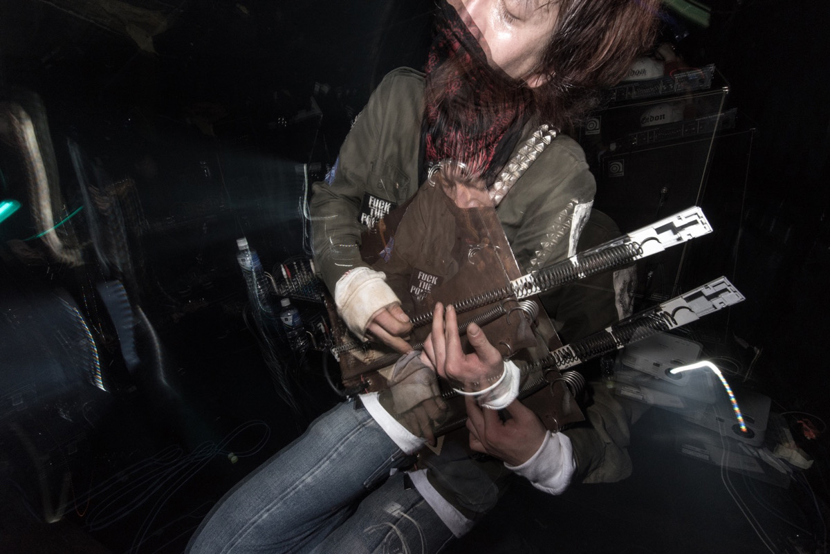 初めて彼の存在を知ったのは、ステージの上の人物としてでした。彼には太一さんというお兄さんいて、共にENDONという楽団を組み、お兄さんがヴォーカル、彼の担当はエレクトロニクス。お兄さんは喉の各種パラメータを自在に操り、Diamanda GalásやMaja Ratkjeなどに匹敵する稀なヴォイス使いだけれど、当時は喉に留まらずヴァイオレンスの針が閾値を超えていて、お兄さんがフロアに降りてくる度に恐怖を感じたものです(その方向性は徐々に異なる表現形態へと転化され、洗練を見たものの、決して角が取れたわけではありません)。彼も彼で、自作インストゥルメントの部品が弾け飛ぶようなパフォーマンスでしたし、ヴォーカルの弟さんだということもなんとなくは把握していたので、同様におっかない人間に違いないと勝手に想像していました。よって、筆者の積極的に人間関係を築く能力が皆無というスペックと相まって、ただただ観客としての立場を維持していたのです。ところが後の2014年、ENDONの『MAMA』という作品をパブリッシュすることになったDaymare Recordingsというレーベルの濱田 忠さんからインタビューのご依頼をいただき、暫し思案。濱田さんには、怖いな~、大丈夫ですかね?的なお返事をしたように思います。でも結局、迷ったらやってみる仕様なので、お話をお伺いすることに。取材にはお兄さんとギタリストの宮部幸宜さんで臨んでくださったのですが、まずクレバーな思考と熱意に舌を巻き、次いで音楽聴取や諸々の問題に対する視点が筆者と近しいことを知り、尊敬と親近感を同時に得る結果となりました。以来、公演会場ではお兄さんの計らいでメンバーのみなさんにご挨拶をするようになり、彼とも言葉少なながらも会話できるようになったのです。終演後に顔を合わせる彼は、ステージと違って、繊細な美青年という印象。もし自分のセクシャリティが違ったら、恋しちゃうかもな~、って思ったりしました。