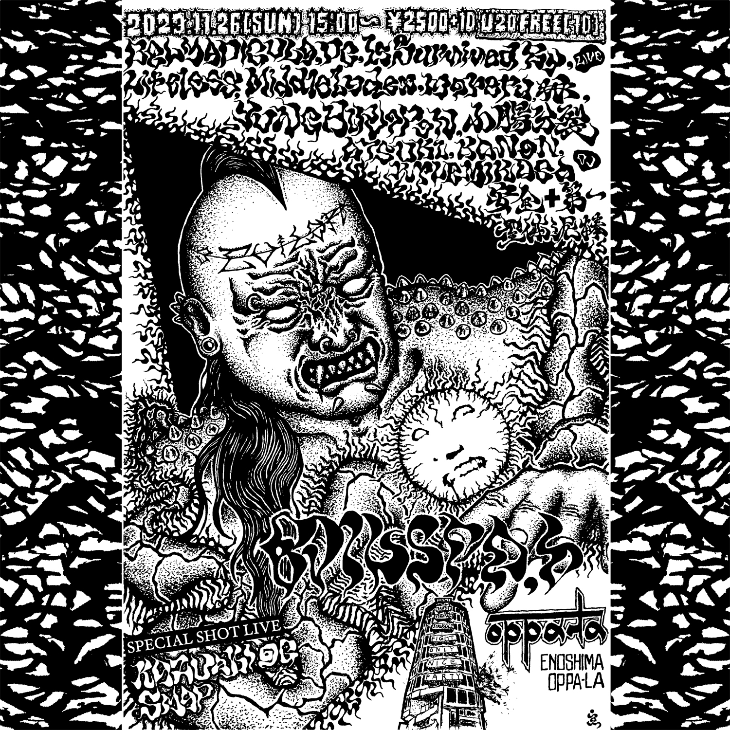 同公演では、主催のmoreru、小腸分裂や、BELMADIGULA、DC、Is Survived By、Kazuaki OG、LIFELESS、Middle Index、SMAP、₩、yung hiroponがライヴ・パフォーマンス。DJとして安全第一、ATSUKI、Kanon、KYLE MIKASA、聖体泥棒が出演し、ヴァイオレントな音像に特化したラインナップとなっています。