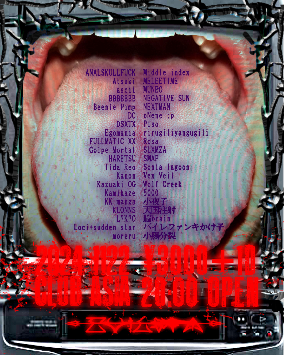 5000 / ANALSKULLFUCK / Atsuki / ascii / バイレファンキかけ子 / BBBBBBB / Beenie Pimp / DC / DSXTX / Egomania / FULLMATIC XX / Golpe Mortal / HARETSU / iida Reo / Kanon / KAZUAKI OG / Kamikaze / KK manga / KLONNS / L?K?O / MELEETIME / Loci + sudden star / moreru / Middle index / MUNÉO / NEGATIVE SUN / NEXTMAN / 脳BRAIN / oNene :p / Piso / rirugiliyangugili / Rosa / 小夜子 / 小腸分裂 / SLXMZA / $MAP / Sonia Lagoon / 天国注射 / Vex Veil / Wolf Creek