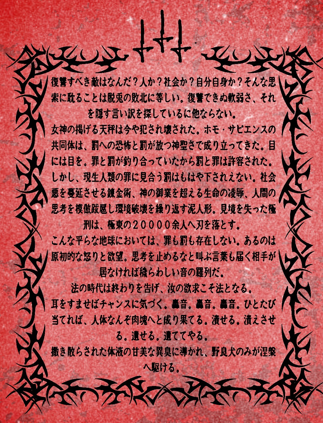 同作には、過去に「evil spa」出演した経歴を持つ面々の楽曲をコンパイル。moreru、小腸分裂をはじめ、042ghxst、ANALSKULLFUCK、BBBBBBB、DC、iida Reo、Kazuaki OG、KK manga、Middle Index、rirugiliyangugili、SLXMZA、$MAP、Wolf Creekが参加し、「evil spa」のスタンスをパックし、パスト & フューチャーを見せる内容となっています。カヴァー・アートはDHS(ANALSKULLFUCK)によるもの。