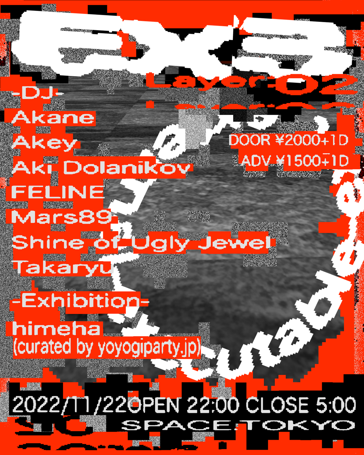 ワイヤード・インスパイアのナンバリングを冠し、“external (外部) – executable (実行可能) – exit (離脱) = EX3”をテーマに開催される同公演には、takaryuに加えてAkane、Akey、Aki Dolanikov、FELINE、Mars89、Shine of Ugly Jewelが出演。会場内では、「yoyogiparty.jp」のキュレーションでhimeha aka DJ Yurushite Nyanによる美術作品のエキシビションも実施されます。