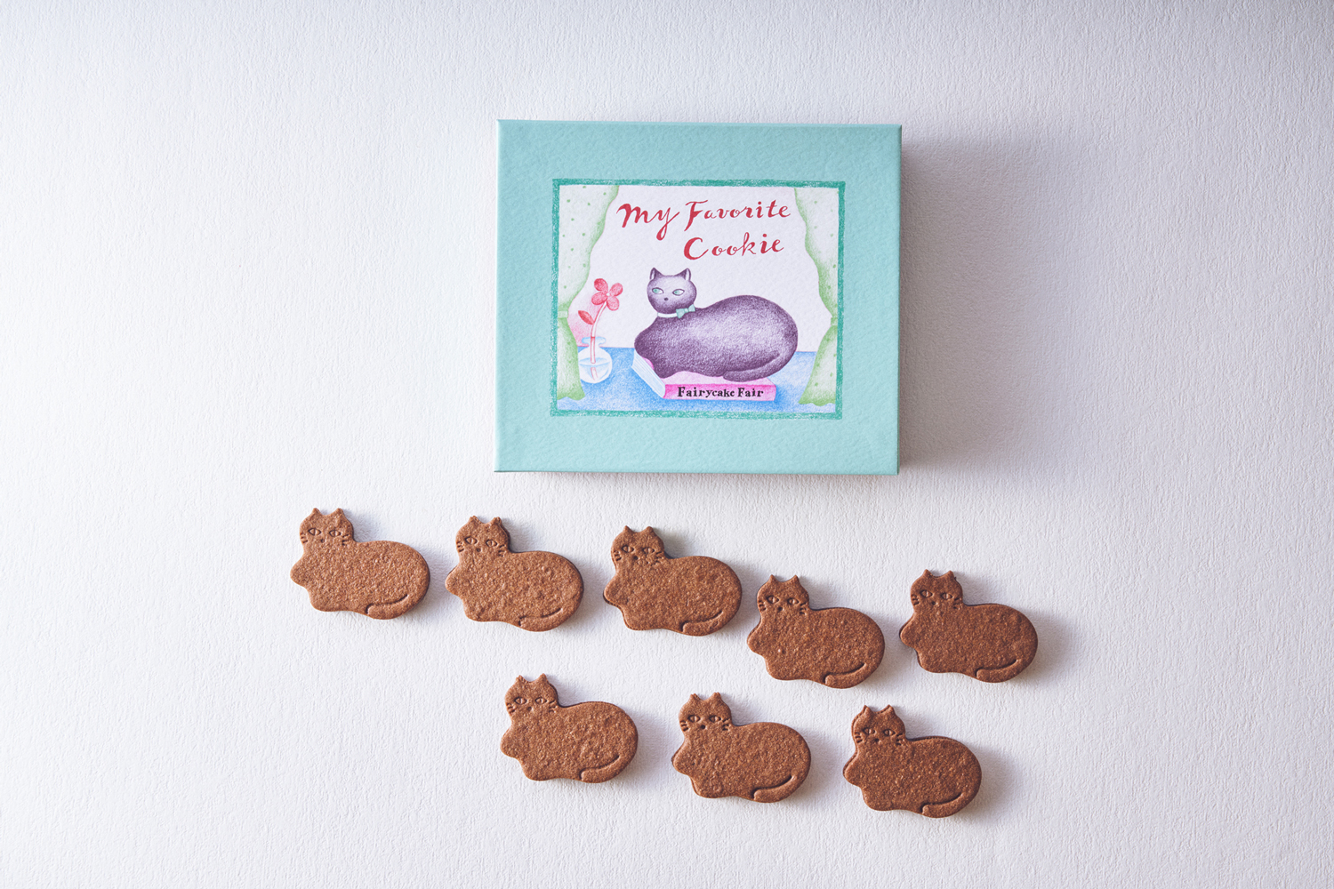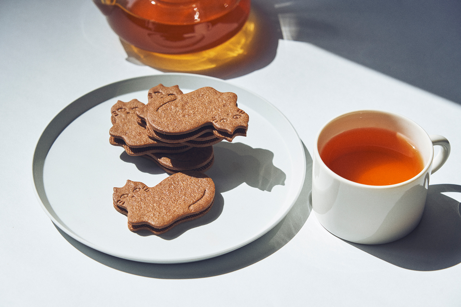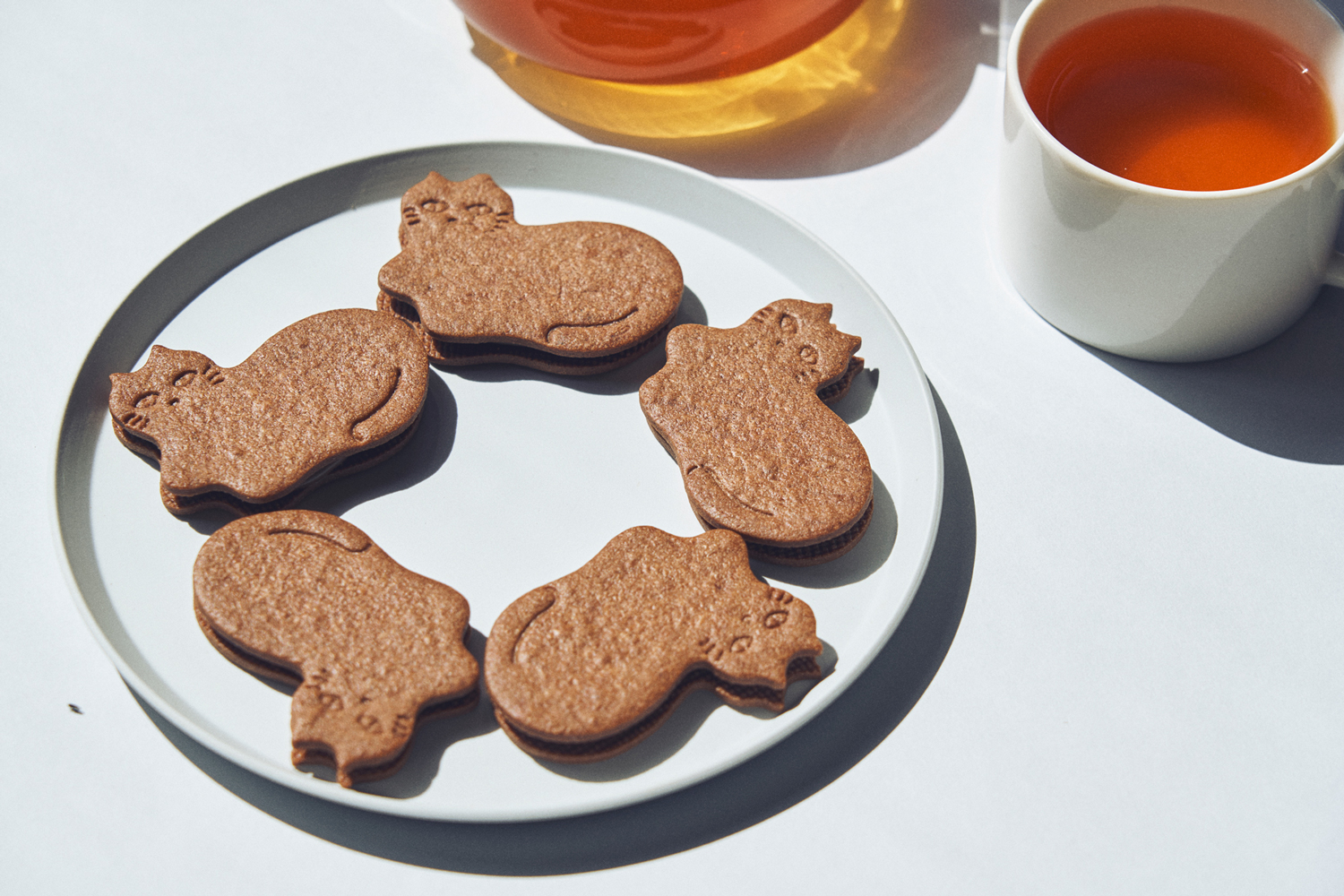 チョコミント好きの坂本と前田が考案し、ミントを前面にフィーチャーした“チョコミント好きのためのお菓子”『My favorite Mint chocolate Cookie』は、オーガニックのペパーミント・オイルを使用したミント・チョコレートをカカオ・クッキーでサンド。香箱座りの猫をあしらったパッケージには、“お菓子を食べ終わってもずっと日常で楽しんでほしい”という両者の思いが込められているとのこと。