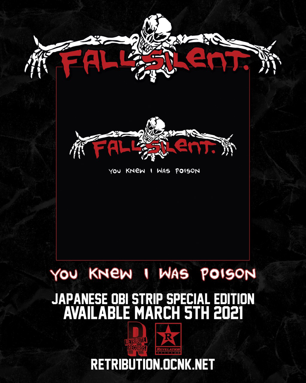 ニュースクール・ハードコアからパワーヴァイオレンス、スラッシュメタル、デスメタルまでサブジャンルを越境して愛され、(THE INFAMOUS) GEHENNAと並んで異彩を放つ90sクロスオーヴァー・ハードコア・パンクの象徴、米ネバダはリノのFALL SILENTが、フル・アルバムとしては『Drunken Violence』(2002)以来実に19年ぶりの新作『You Knew I Was Poison』を引き続き「Revelation Records」からリリース。帯付き国内仕様CD(RR16 1,900円 + 税)も「Retribute Records」より3月12日(金)に発売されます。