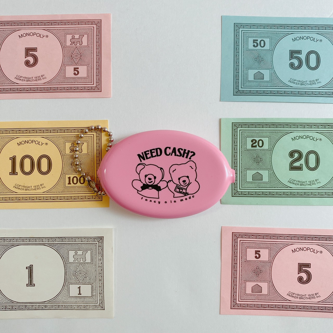 Fancy a la modeがデザインしたコインケースです。「NEED CASH?」の文字入り。