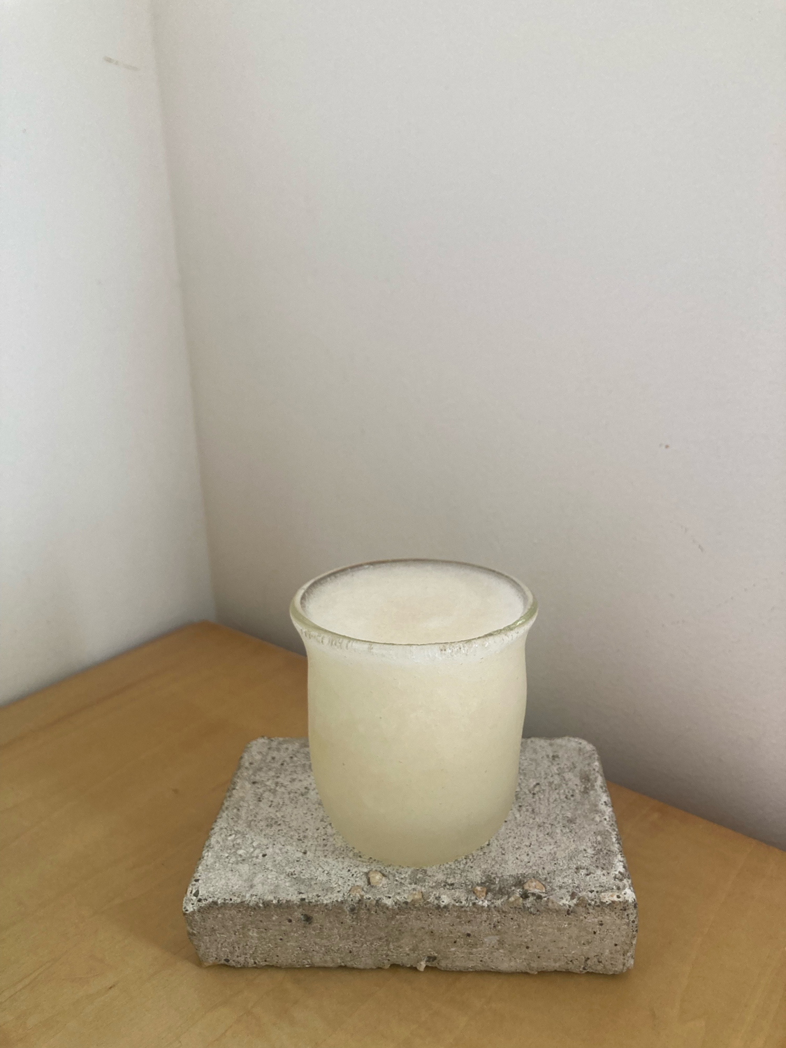 02 | ジューサーで氷を攪拌して細かくなったところへナシと水を入れてさらに攪拌する。もし攪拌しにくい場合は水を追加する。