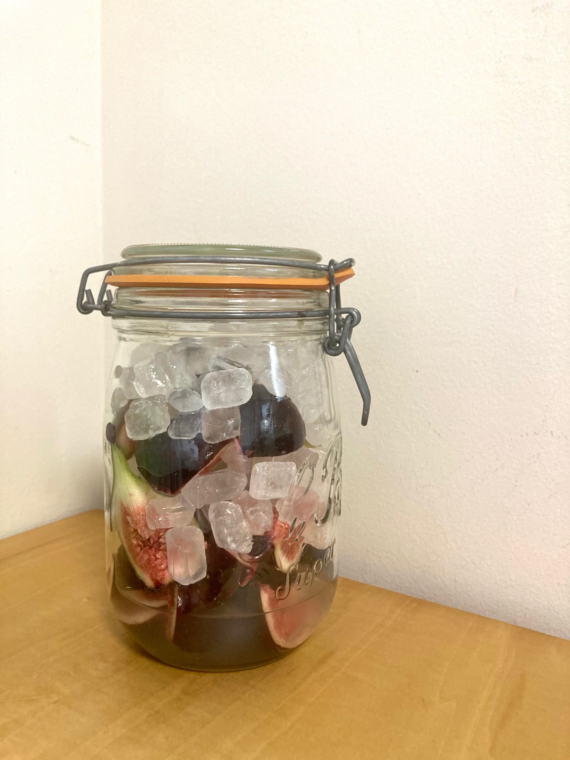03 | 冷暗所で1週間ほど置く。時々瓶を回して氷砂糖(蜂蜜)が溶けやすいようにする。気温が高い時期はカビが生えないように気をつける。