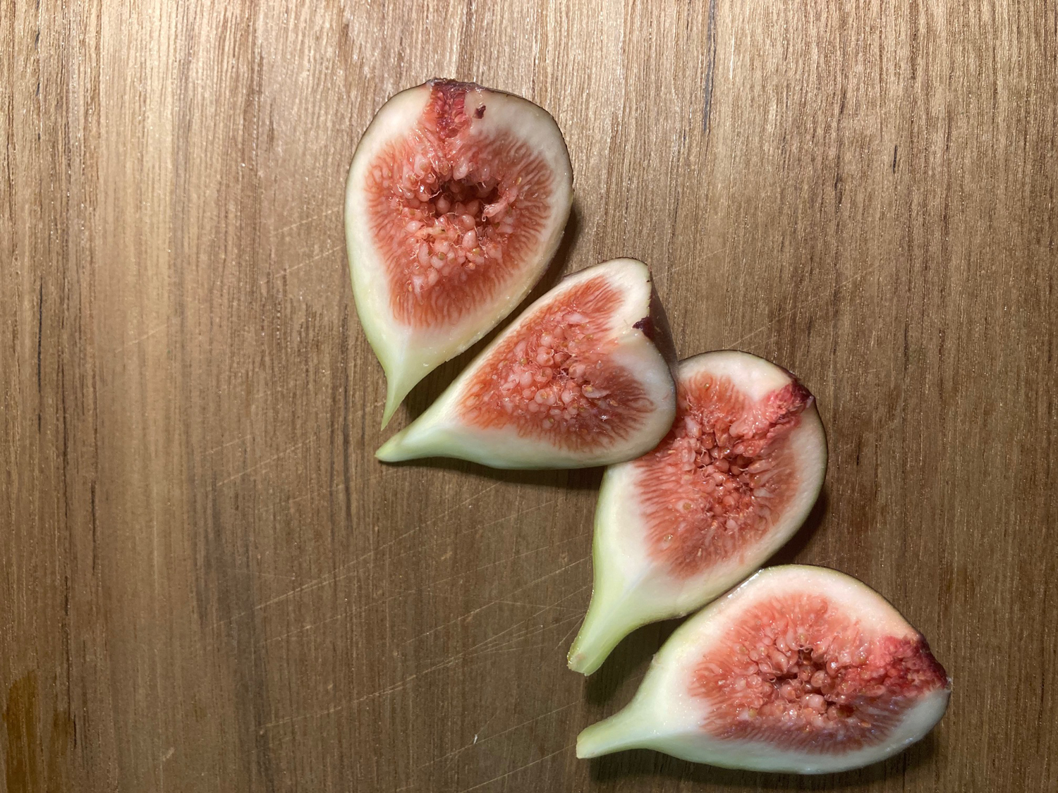 01 | フルーツを適当な大きさにカットする。イチジクなら4等分、プラム2等分、小さいベリー系はそのままでよい。