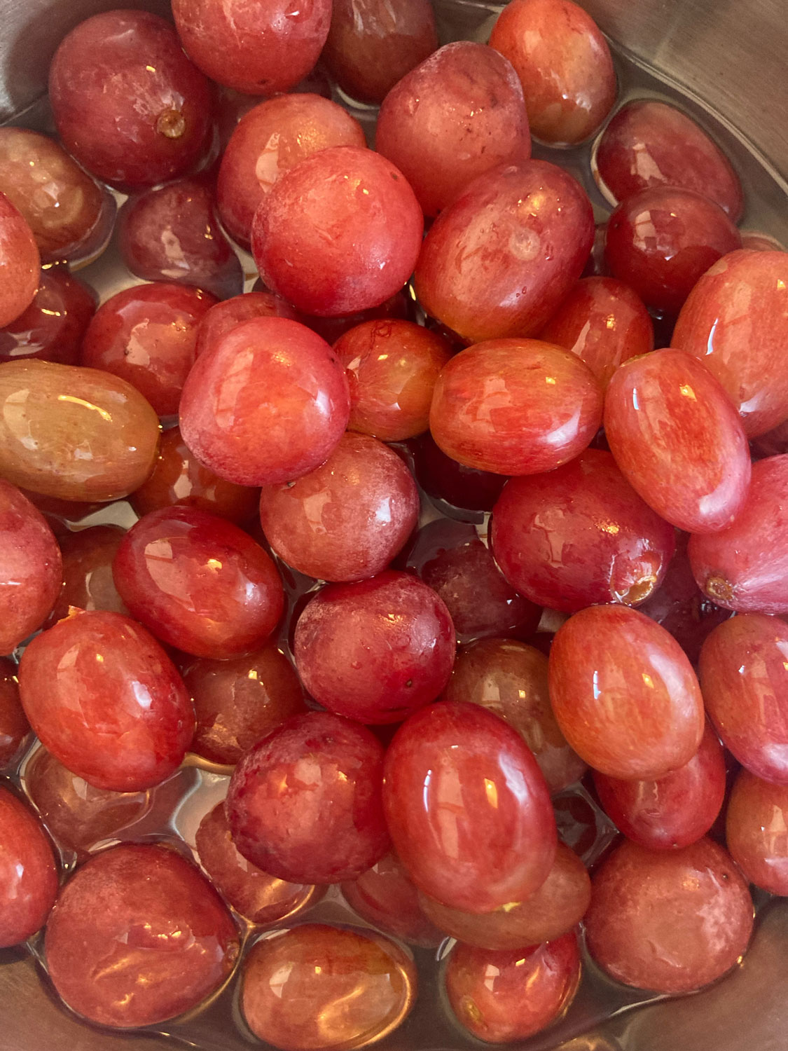 01 | ブドウは房から外し、洗ってからざるなどにあげて水気を切る。このときにブドウの分量を測っておく。