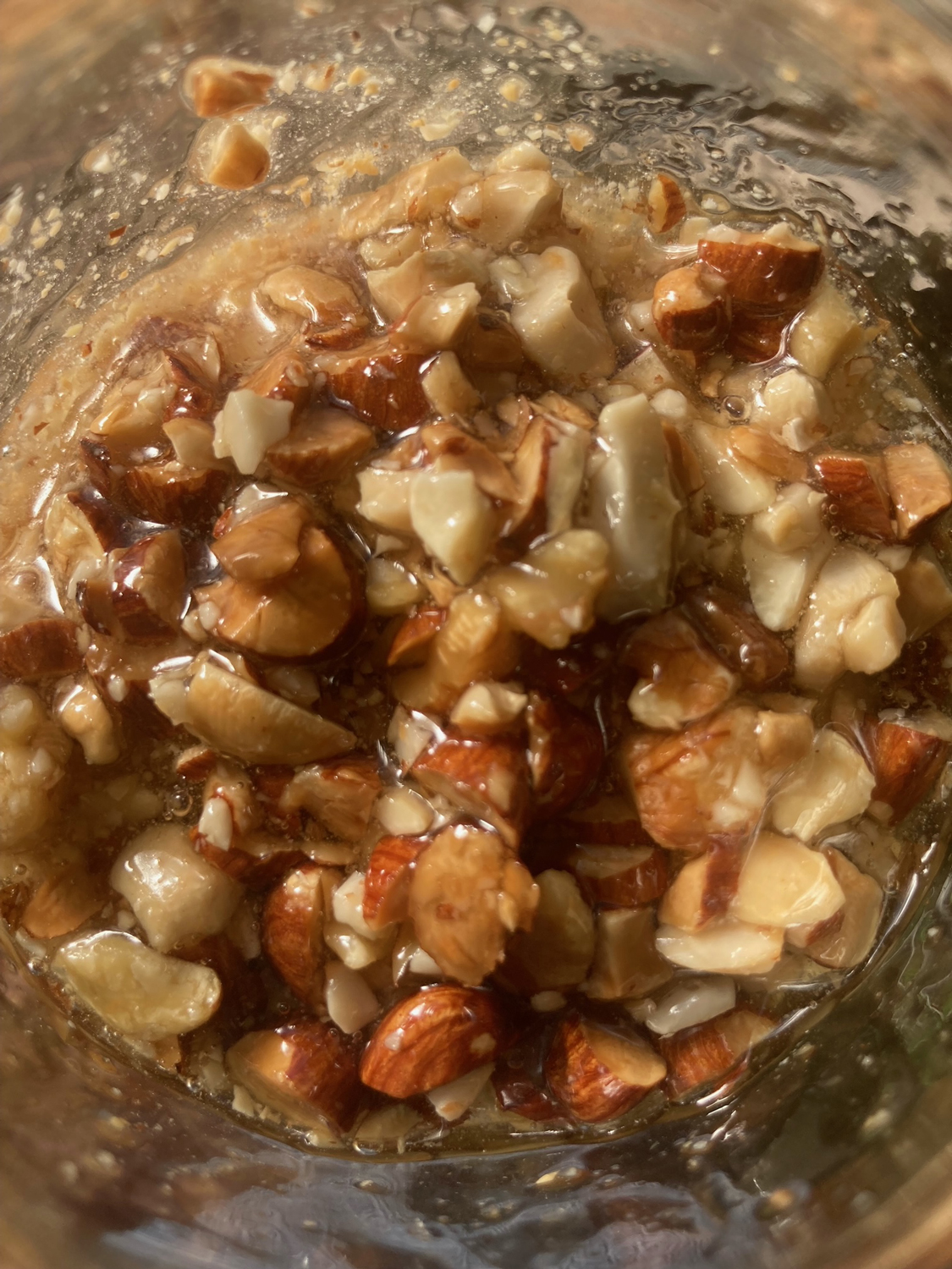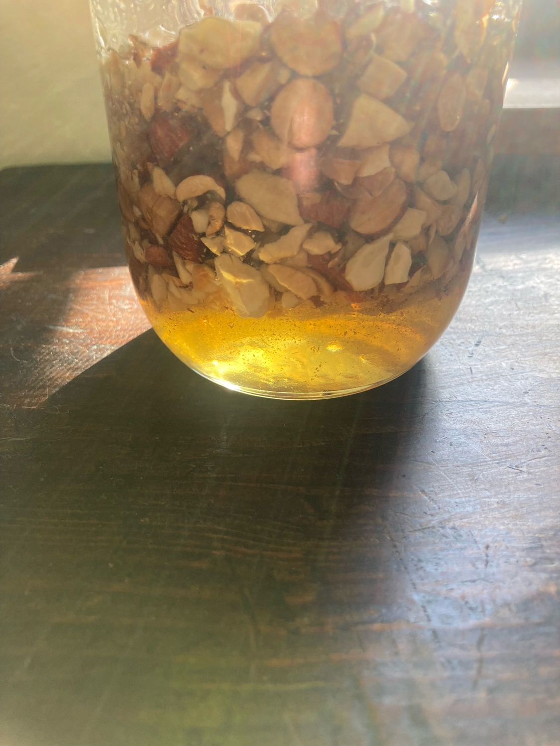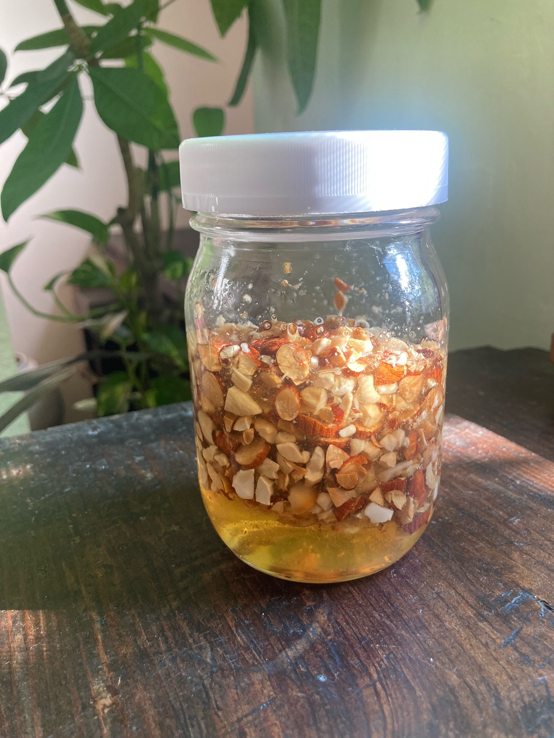 02 | 清潔な保存瓶に01のナッツ、蜂蜜を入れて4~5日置いて馴染ませる。