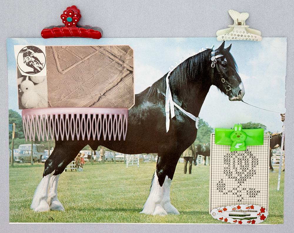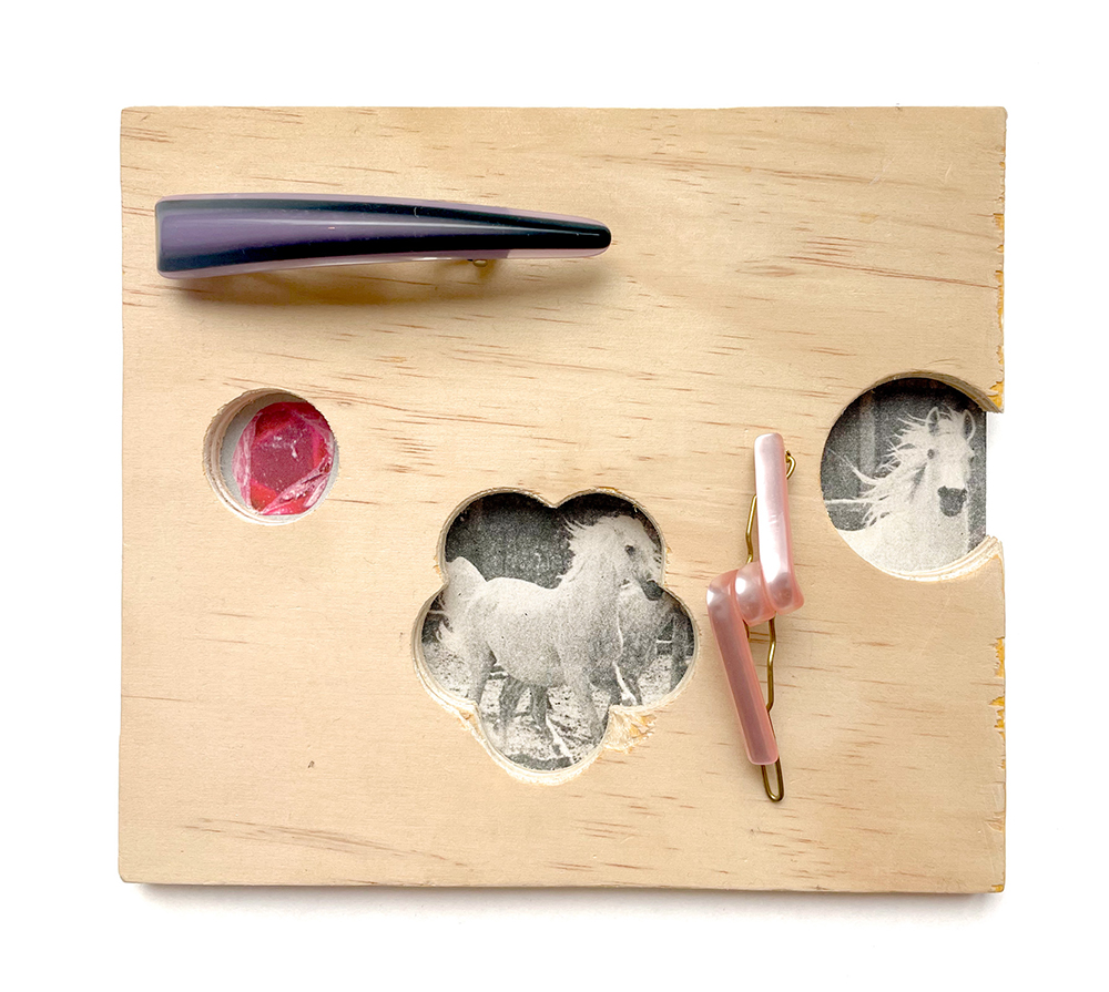 からインスピレーションを得て作品を制作しているというFlossy。同展では、ヘアクリップ、キーホルダー、クロスステッチなどのコラージュをヴィンテージ・フレームに収めた作品をはじめ、コラージュ技法を発展させた作品シリーズを展示。会期初日の4日(金)には、Flossy本人も参加予定のオープニング・レセプションが実施されます。