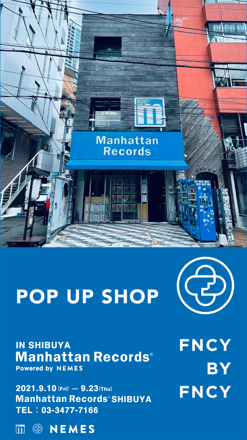 同作の発売を記念して、東京・渋谷は宇田川町の老舗レコード・ショップ「Manhattan Records®」にFNCYのポップアップ・ショップが9月10日(金)から23日(木・祝)までの期間限定でオープン。同店では『FNCY』『FNCY BY FNCY』のCDに加え、両作のカセットテープ・エディションや、Tシャツ、マット、ソックス、クッション、マグカップ、ラバーキーホルダー、ネックピース、ライターなどの多彩なオリジナル・アイテムが販売されます。店頭でのアイテム購入者には、Manhattan Records®️ SHIBUYA STORE x FNCYのコラボレート・ショッパーと『FNCY BY FNCY』ステッカーを進呈。
