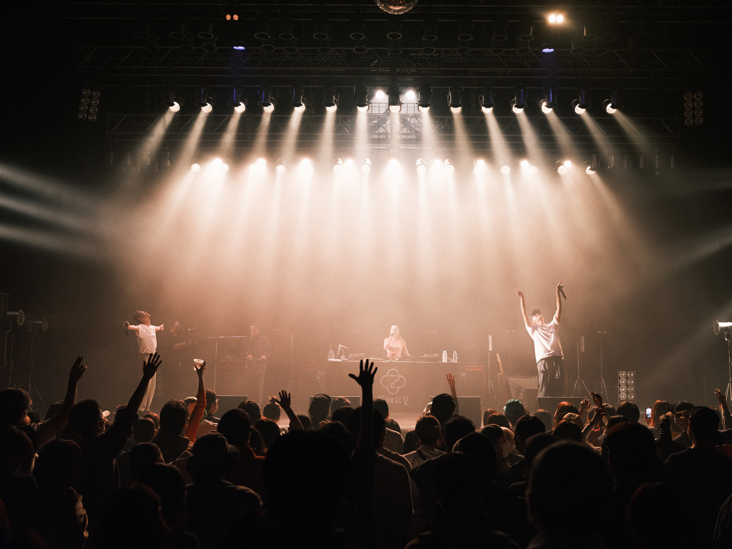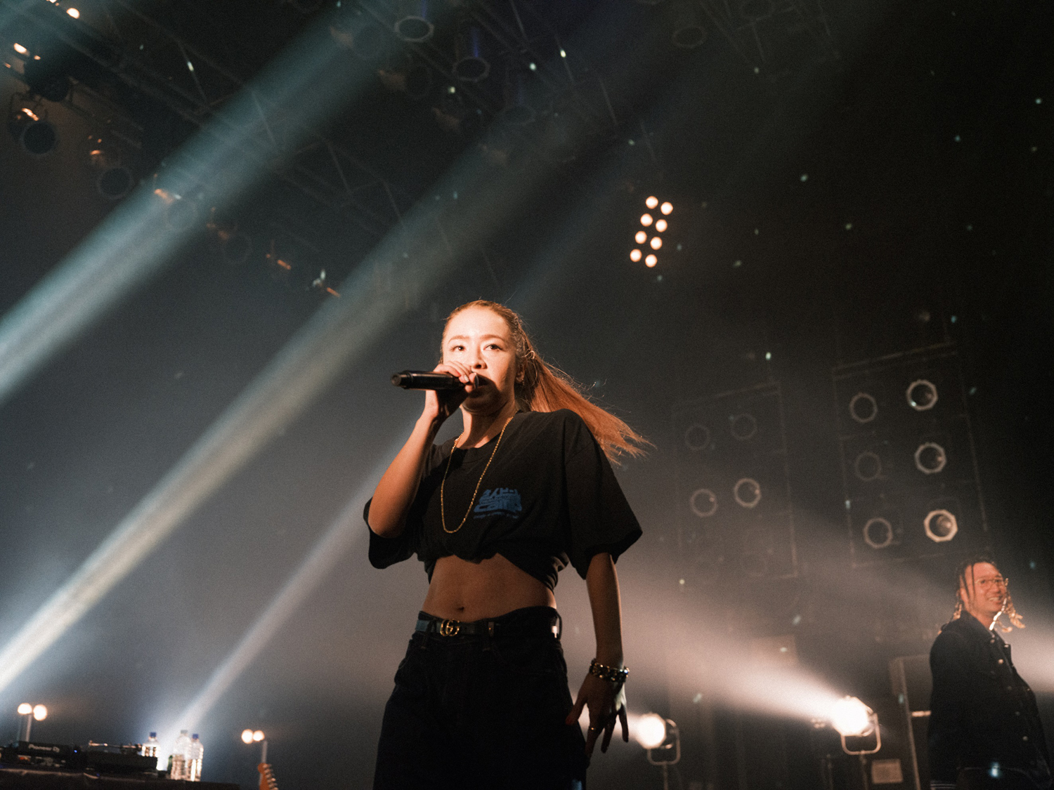 そういったヒストリーと繋がるように、ZEN-LA-ROCK作品にG.RINAが参加した「MOON」、G.RINA作品に鎮座DOPENESSが参加した「想像未来」、FNCY結成の契機となった「SEVENTH HEAVEN」と、FNCYが今日に至るまでの道程をこの3曲でタイトに表現。そしてFNCYのデビュー曲となった「AOI夜」から最新アルバム収録の「TOKYO LUV」に展開し、ライヴは一旦幕を閉じた。