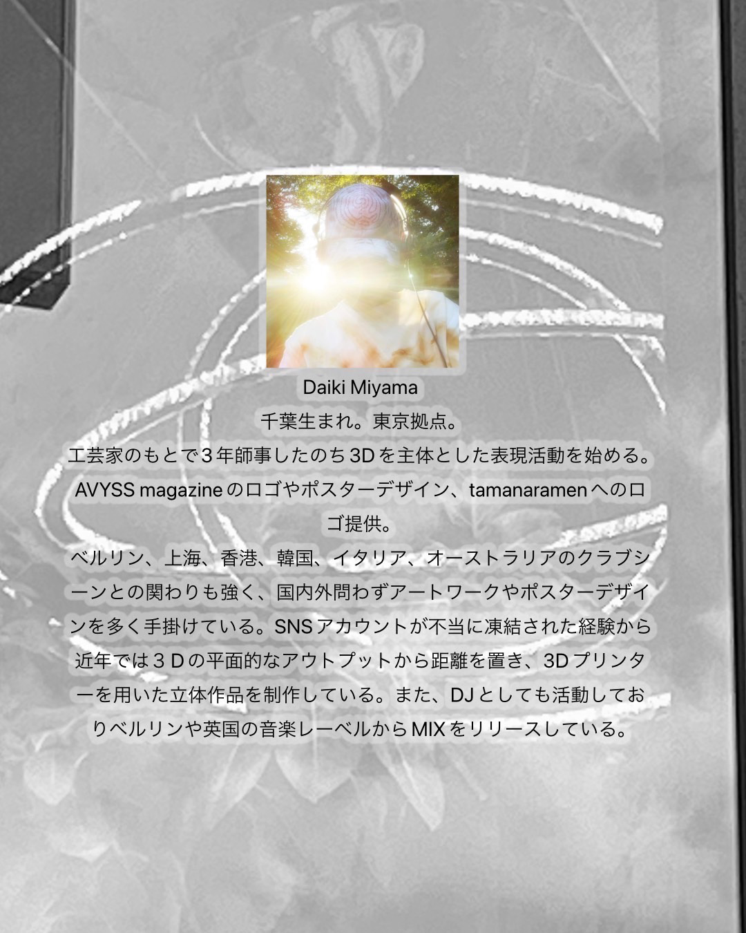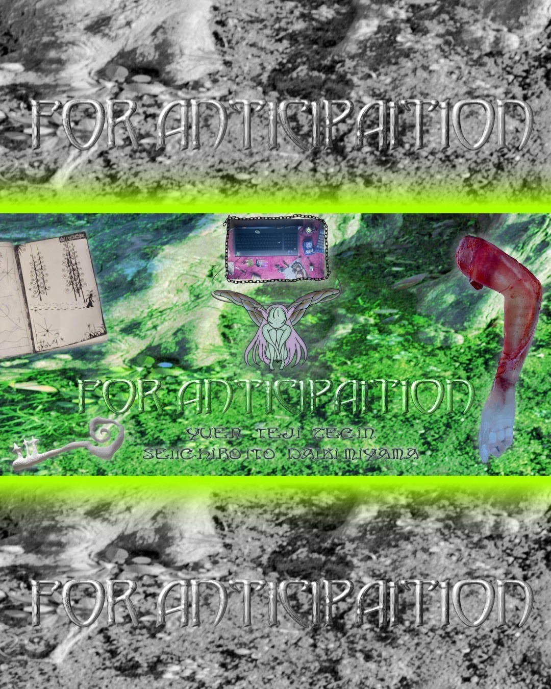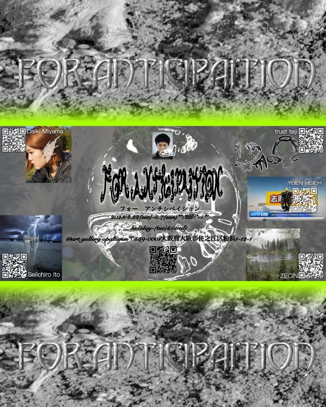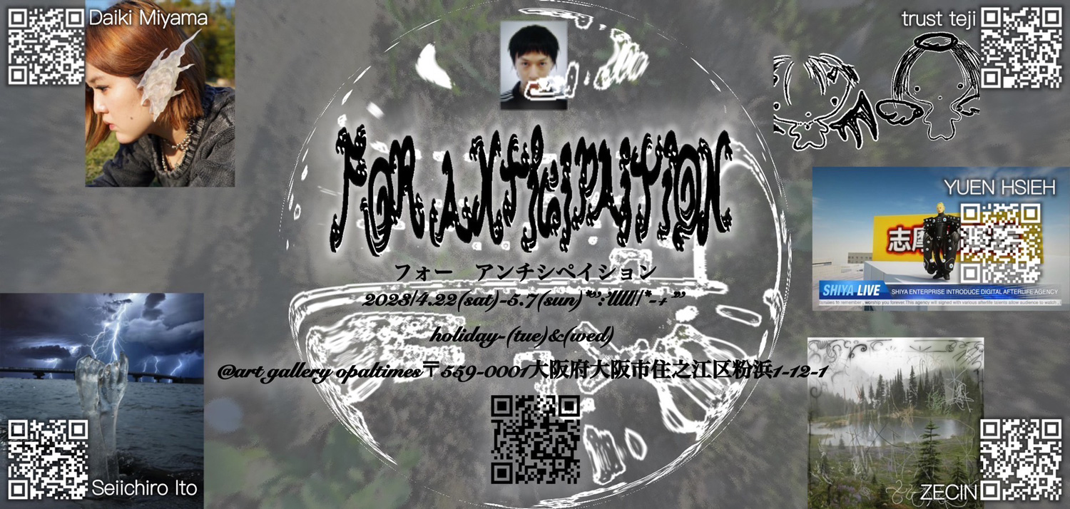 “未来予想図のために”との意味がタイトルに込められているという同展には、「AVYSS」やtamanaramenのロゴなどを手がけ、DJとしても知られるDaiki Miyama、パフォーマンス、インスタレーション、オブジェクトの制作に取り組み、松永拓馬、betcover!!の衣装制作も担当する伊藤誠一朗、イギリス・ロンドン / 中国・上海を拠点に活動する映像作家YUEN、昨年6月に東京・半蔵門 A.N.D.galleryにて個展「The Story Of Light: Chapter 1」を開催したアニメーション作家 / VJ / イラストレーターZECINの4名が参加。会期中の4月23日(日)から29日(土)にはtejiによるタトゥ施術も予定されています。施術の予約はtejiのInstagramにて受付。