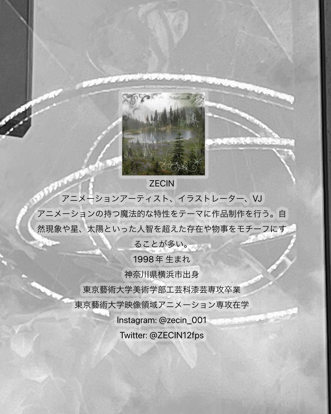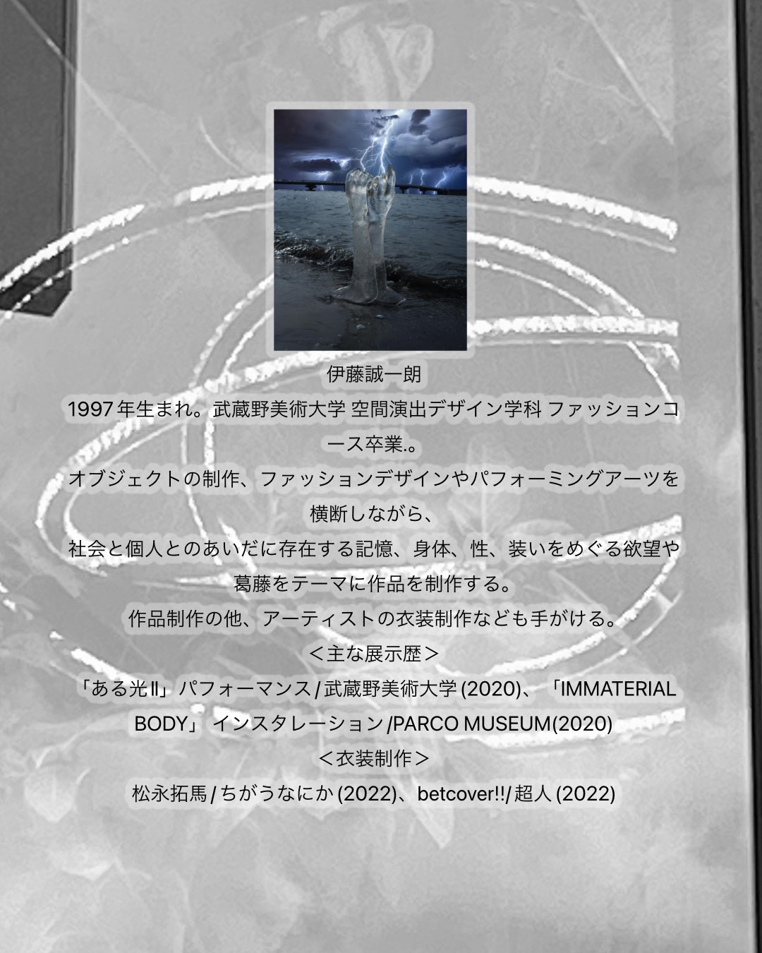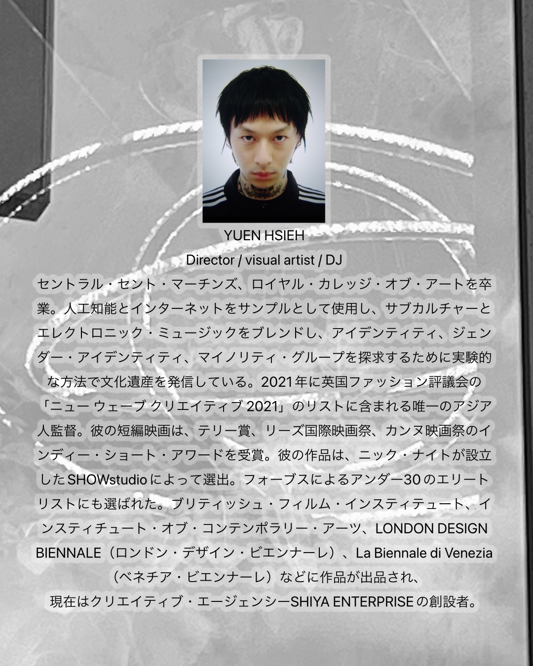 “未来予想図のために”との意味がタイトルに込められているという同展には、「AVYSS」やtamanaramenのロゴなどを手がけ、DJとしても知られるDaiki Miyama、パフォーマンス、インスタレーション、オブジェクトの制作に取り組み、松永拓馬、betcover!!の衣装制作も担当する伊藤誠一朗、イギリス・ロンドン / 中国・上海を拠点に活動する映像作家YUEN、昨年6月に東京・半蔵門 A.N.D.galleryにて個展「The Story Of Light: Chapter 1」を開催したアニメーション作家 / VJ / イラストレーターZECINの4名が参加。会期中の4月23日(日)から29日(土)にはtejiによるタトゥ施術も予定されています。施術の予約はtejiのInstagramにて受付。