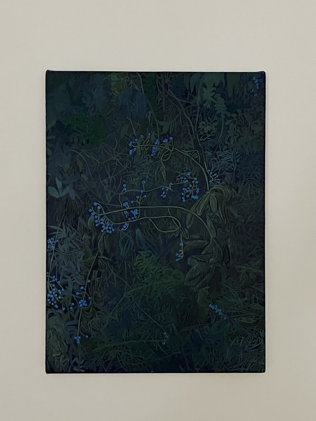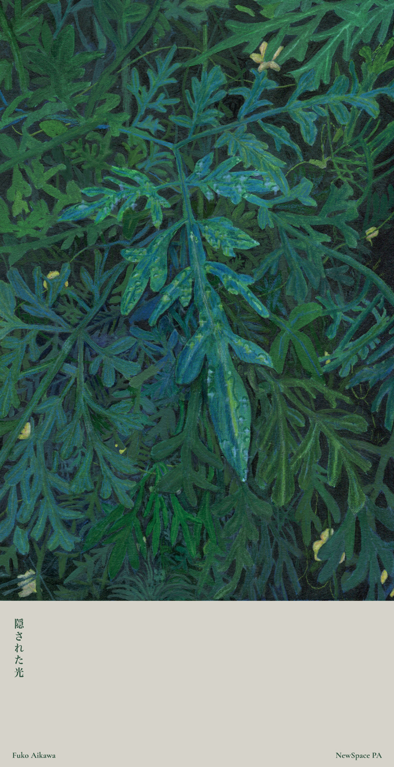 を展示。相川は同展について、月光や遠くの街灯によって少しだけ輪郭を表す植物たちの姿と、その葉や茎に触れて跳ね返る小さな光を追いかけて描きました