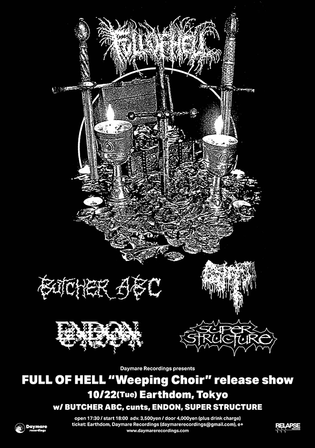出演: FULL OF HELL / BUTCHER ABC / cunts / ENDON / SUPER STRUCTURE