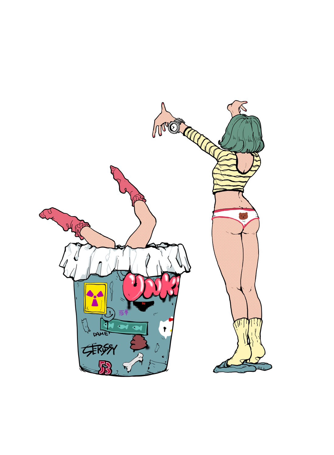 自身の“憧れ”を作品に描き続けるフルカドと、“エイリアンファッショナブル”を表掲するSIMON。両作家による初の本格展示となる同展では、60点以上に及ぶ新作を展示販売。キーホルダー、ステッカー、ポストカードなどのアイテムも販売されます。通信販売も予定。