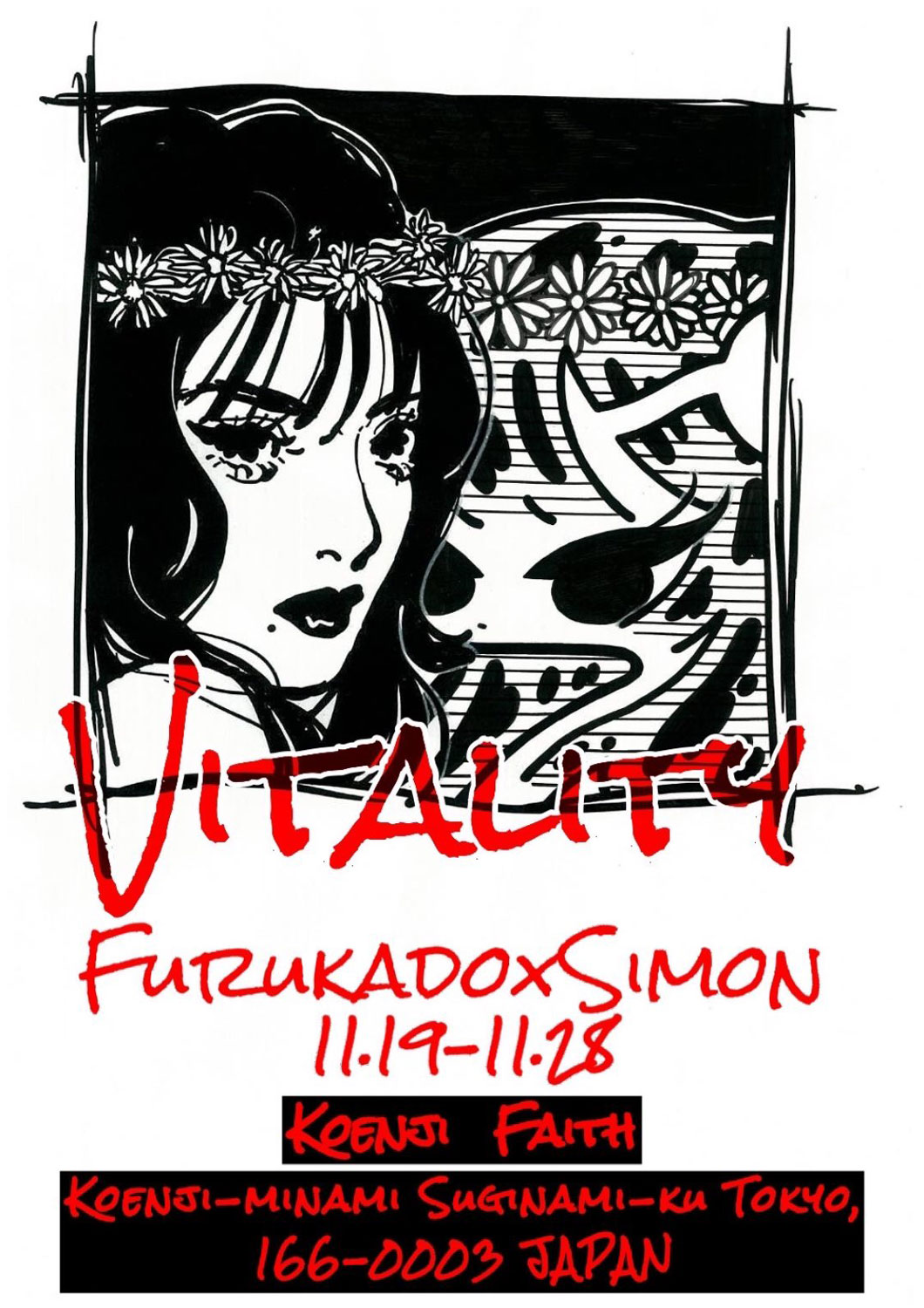 8月に東京・原宿 ANICOREMIX GALLERYにて開催されたグループ展「Whom you are_vol.1 Group Exhibition」に参加したフルカドと、10月に個展「AlienTransgender」を福岡・祇園 HafH Fukuoka THE LIFEで開催したSIMONが、二人展「VITALITY」を東京・高円寺 FAITHで11月19日(金)から28日(日)まで開催。