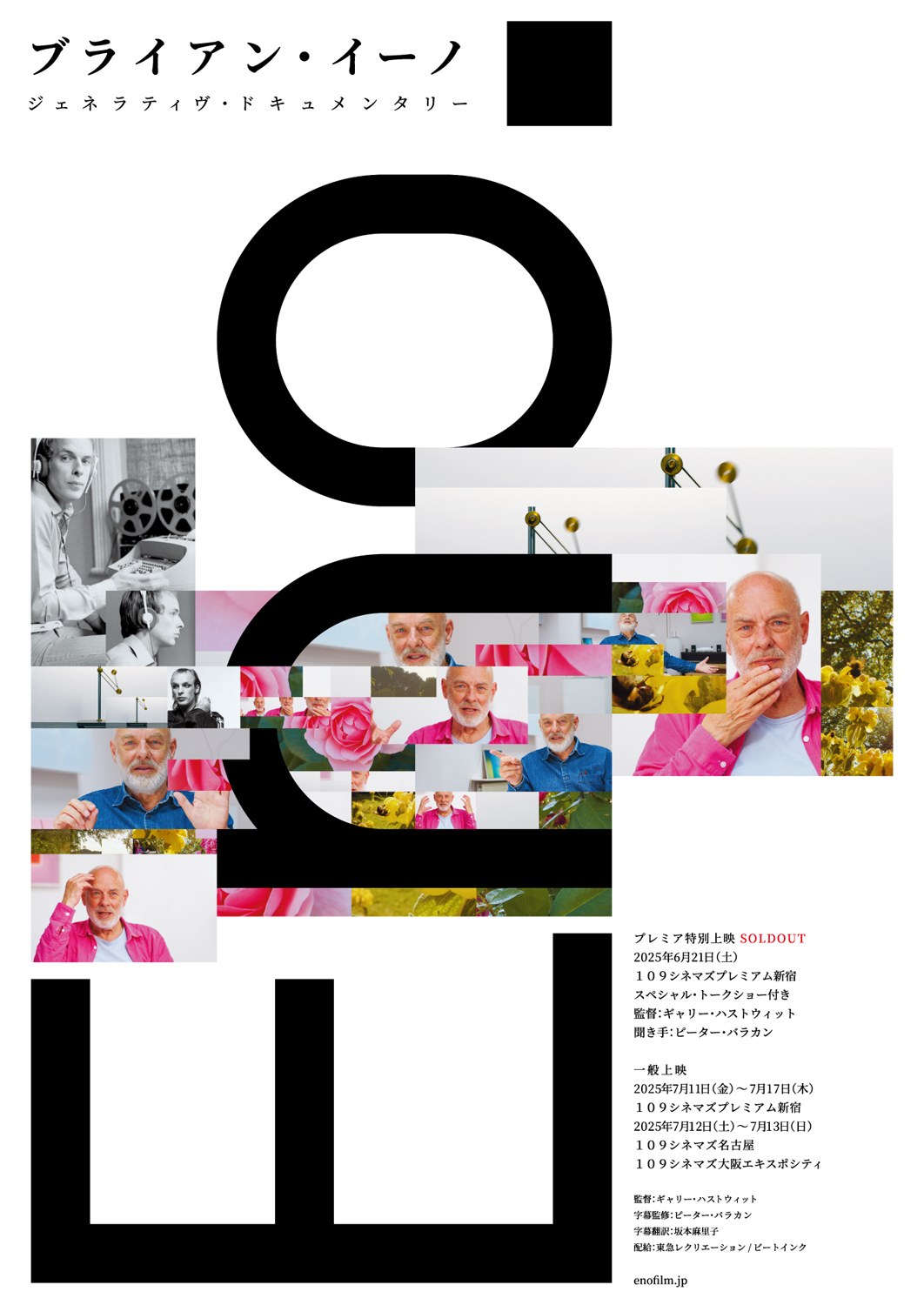 『Eno』は、“Brian Eno”のアナグラムを冠するソフトウェア「Brain One」が500時間超に及ぶアーカイヴからフッテージをランダムに選択、1本のドキュメンタリー映画としてジェネレートし、上映都度に内容が変化する(52,000,000,000,000,000,000パターン)という挑戦的な制作過程を経た作品。事前に文字情報から受けるグリッチィな印象とは裏腹に、イーノのクリエイティヴィティを様々な角度から捉えたひとつの作品として充実する内容に驚かされます。