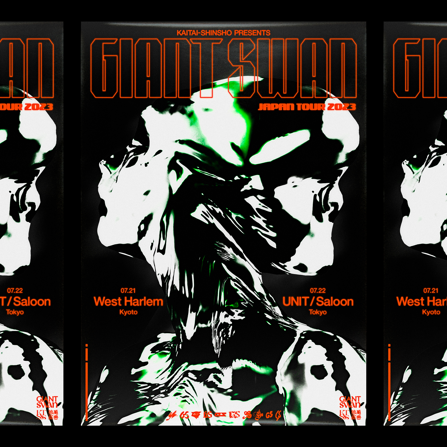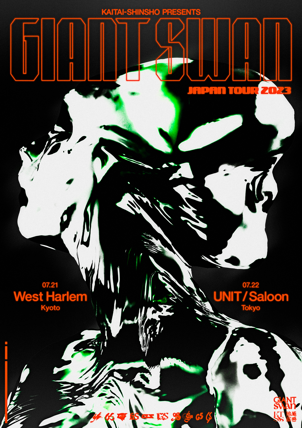 JABU、Kahn、O$VMV$M、VesselらYOUNG ECHO周辺との親交が深く、Daniel Avery、MY DISCO(Downwards)のリミックスやMoor Motherのプロデュースワーク、IDLESのサポートなどでも知られるGIANT SWAN。現行のブリストルのみならず当代のフロア・ミュージックを象徴する存在のひとつとなっている同グループの初ジャパン・ツアーでは、Gunilla、Kotsu、MOFO、Romy Mats、YASDUB(以上京都公演)、Albino Sound、Compuma、HIMAWARI、Kotsu、Lil Mofo、Romy Mats、DJ Shufflemaster、ZUNDOKO DISCO(以上東京公演)と共演。両公演共に早割チケットは完売し、通常前売チケットがZAIKOにて販売されています。
