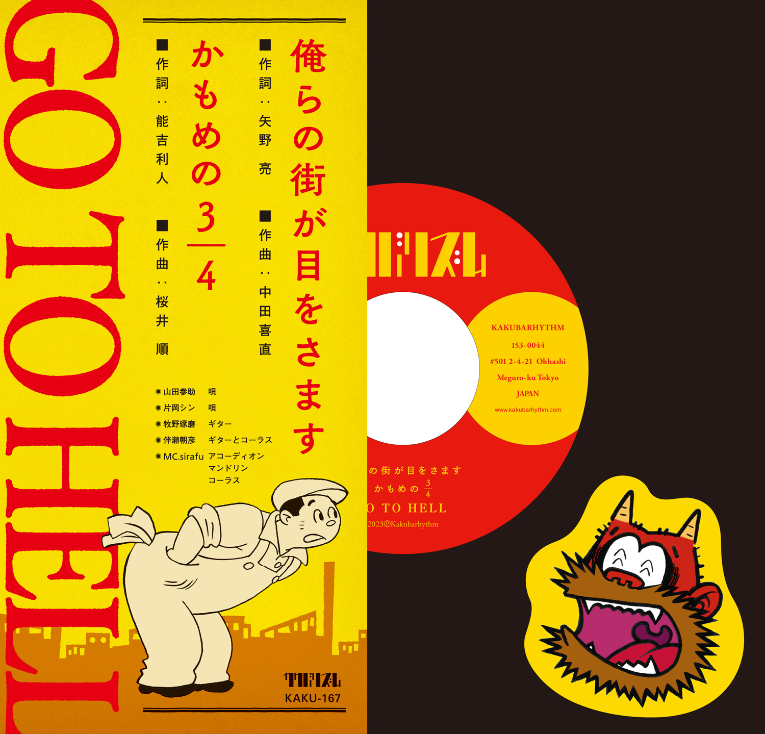伴瀬朝彦(片想い, cooking songs)、片岡シン(片想い)、牧野琢磨(NRQ)、MC.sirafu(片想い, ex-ザ・なつやすみバンド)、山田参助(泊)の5名によるバンド・GO TO HELLが、7"ヴァイナル『俺らの街が目をさます』を10月25日(水)に「カクバリズム」からリリース。