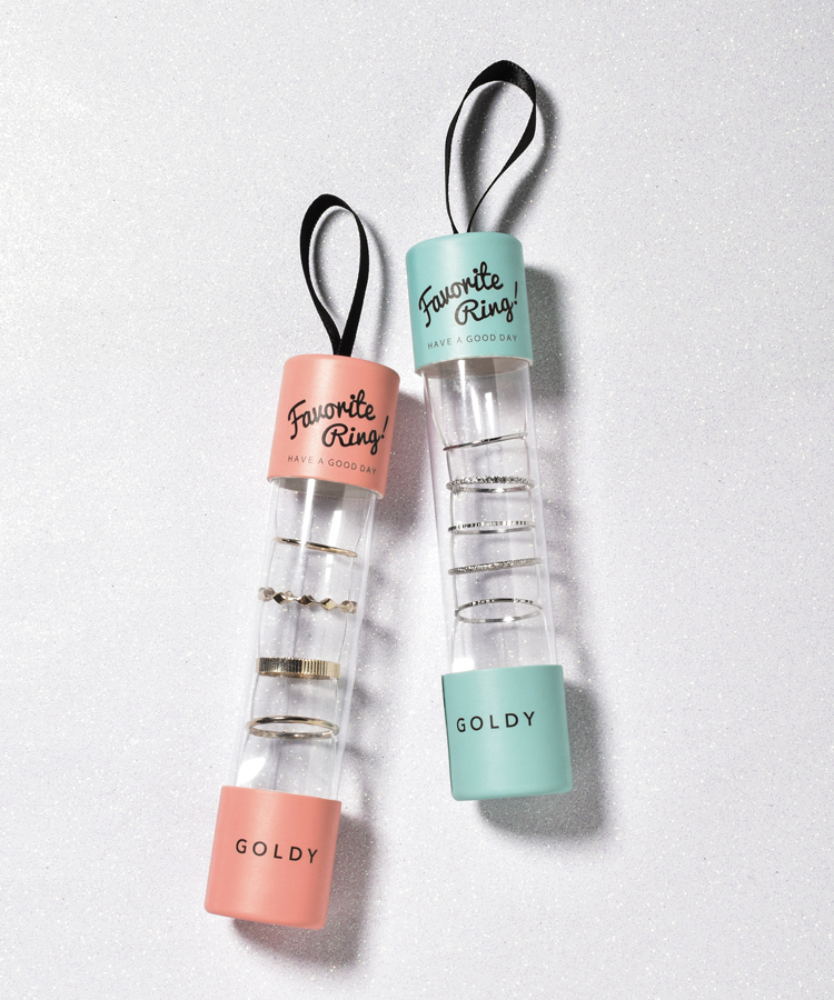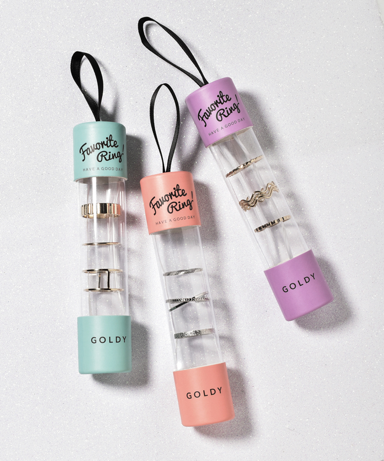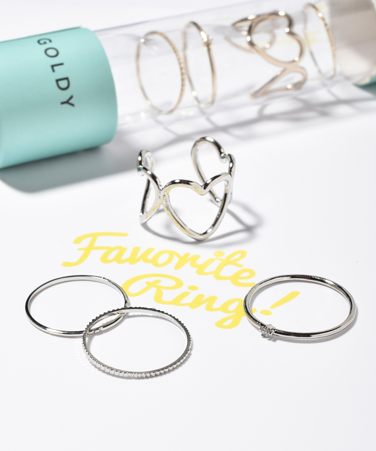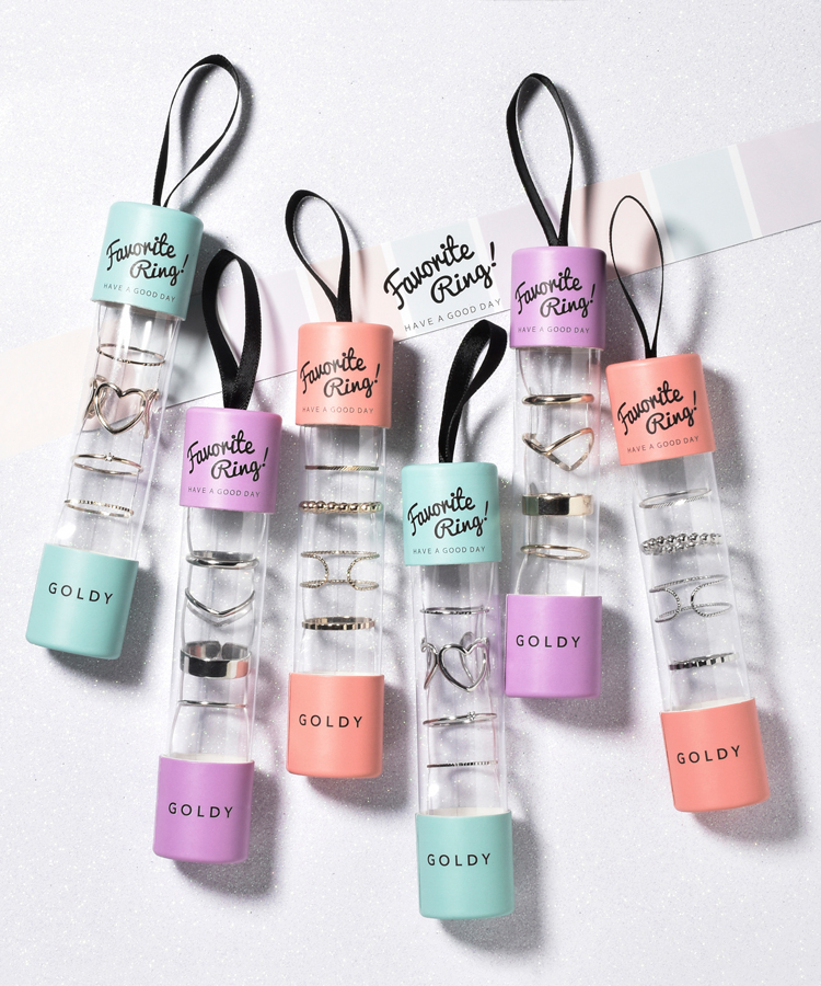 “自分のファッションスタイルを遊び心いっぱいに楽しむ女性のためのアクセサリーブランド”「GOLDY」が、4本セットのリング『Favorite Ring!』(1,900円 + 税)を発売中。