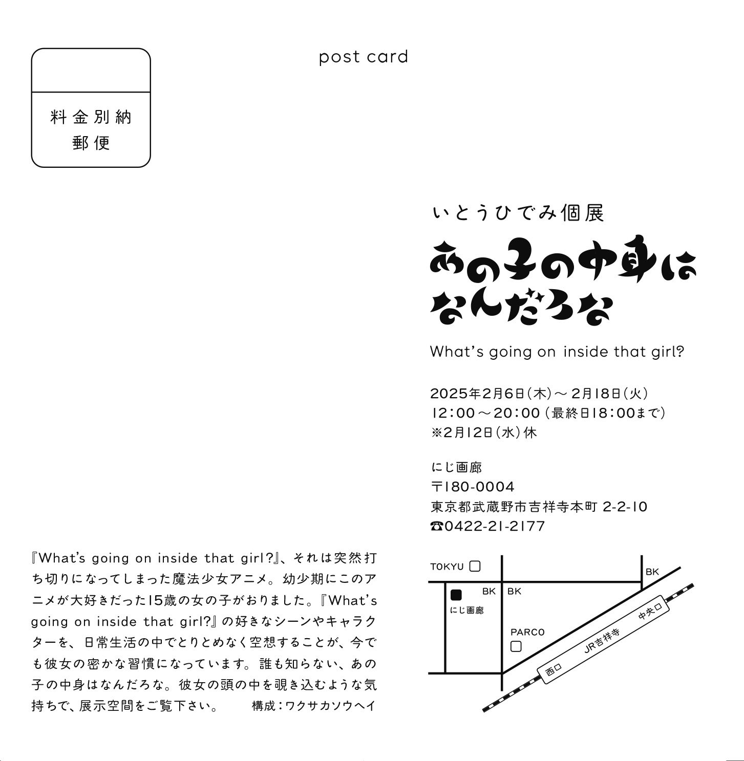 12:00-20:00 | 最終日 -18:00 | 水曜定休