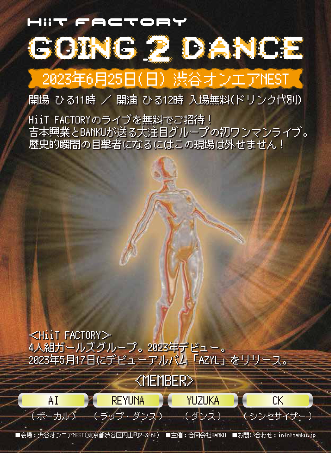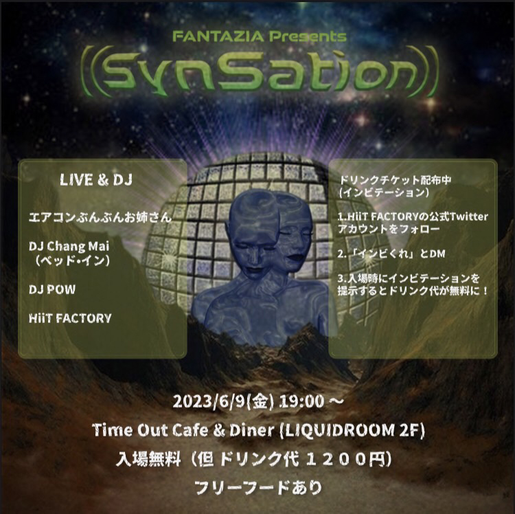入場無料(別途ドリンク代 1,200円)※ HiiT FACTORYのTwitterをフォロー & DMでドリンク代無料