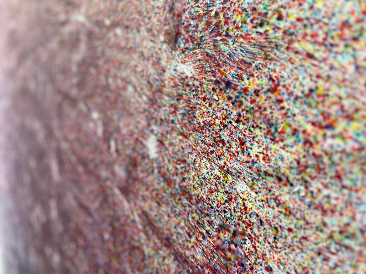 グロテスクな内側も、吐いたつばのトゲトゲも、見せつけられたヘドロも、刺さったトゲトゲも陽に晒され色が見える。黒ではない全ての色の束、光と同じ現象色。いろの交りが愛おしい。生々しいいのちのよう。